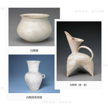 属性及应用时期:表里和胎质都呈白色的一种素胎陶器,中国新石器时代至商代,商代晚期是白陶器高度发展时期。