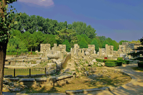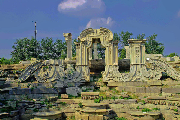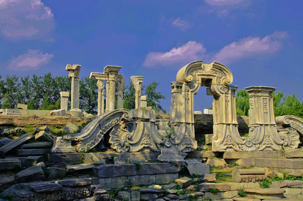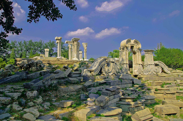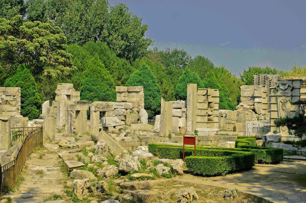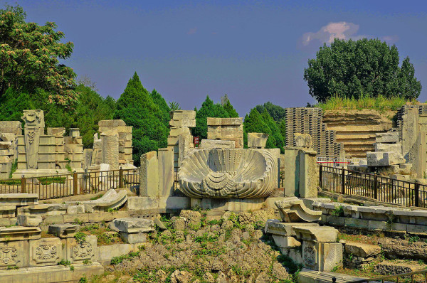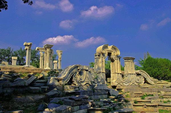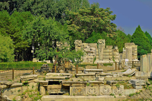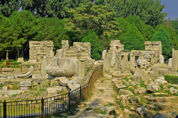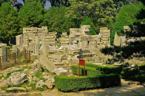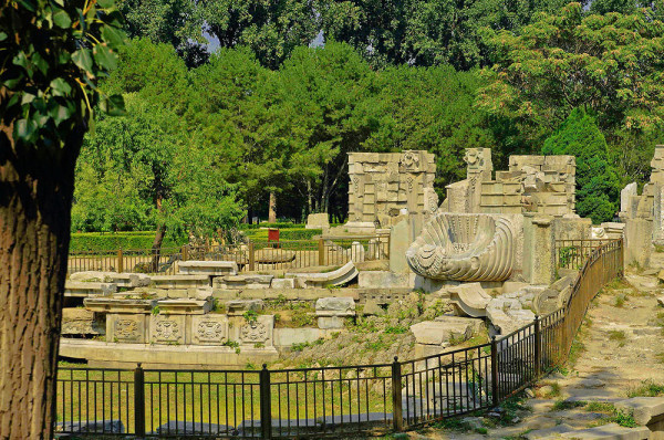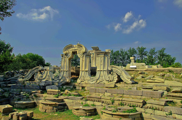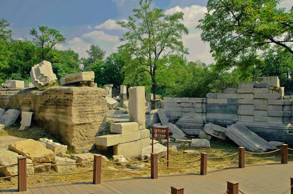 圆明园位于北京市西郊,原为清代一座大型皇家御苑,它的陆上建筑面积和故宫一样大,水域面积又等于一个颐和园。圆明园汇集了当时江南若干名园胜景的特点,这座超巨型园林就是当之无愧的“世界园林之王”了。遗憾的是,1860年英法联军洗劫圆明园,园中的建筑被烧毁,文物被劫掠,奇迹和神话般的圆明园变成一片废墟,只剩断垣残壁,供游人凭吊。