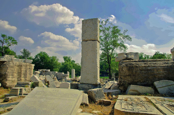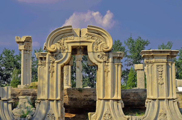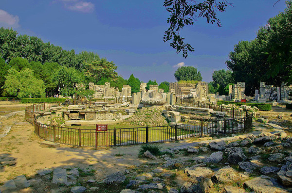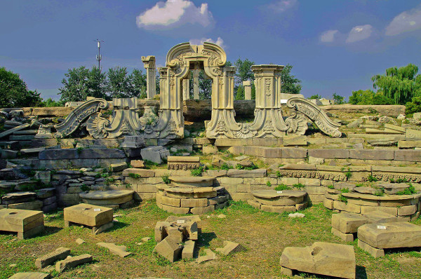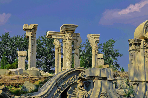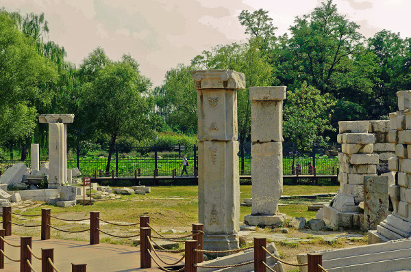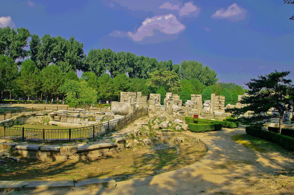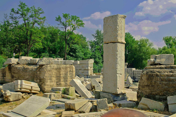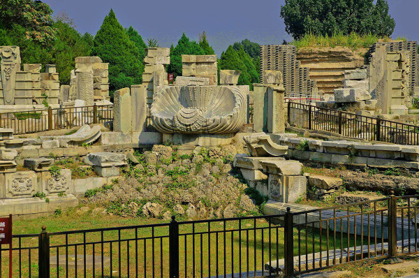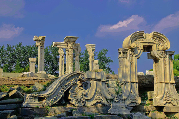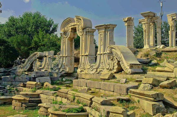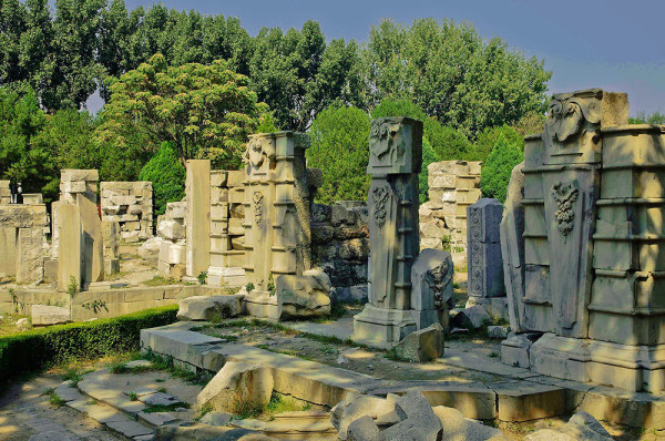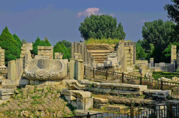 圆明园位于北京市西郊,原为清代一座大型皇家御苑,它的陆上建筑面积和故宫一样大,水域面积又等于一个颐和园。圆明园汇集了当时江南若干名园胜景的特点,这座超巨型园林就是当之无愧的“世界园林之王”了。遗憾的是,1860年英法联军洗劫圆明园,园中的建筑被烧毁,文物被劫掠,奇迹和神话般的圆明园变成一片废墟,只剩断垣残壁,供游人凭吊。