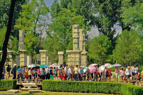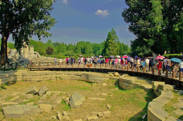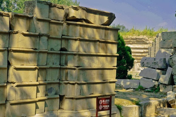 整个路面底部由南向北逐渐升高,最北端与最南端相差,而路面上部看起来很平坦,这种设计方法的妙处是象征皇帝步步升高,寓为升天、祈福。