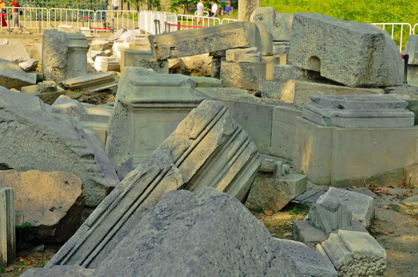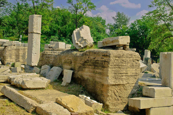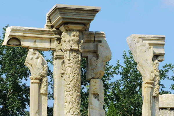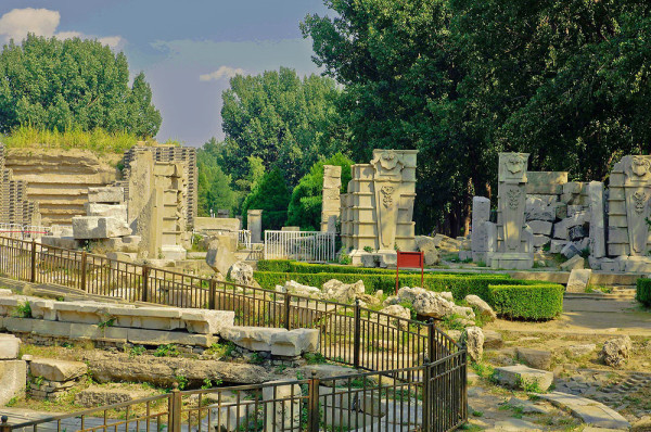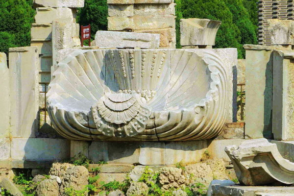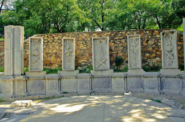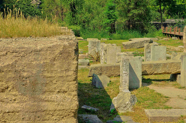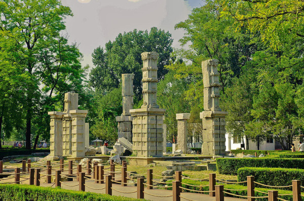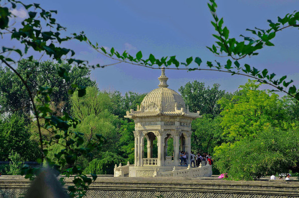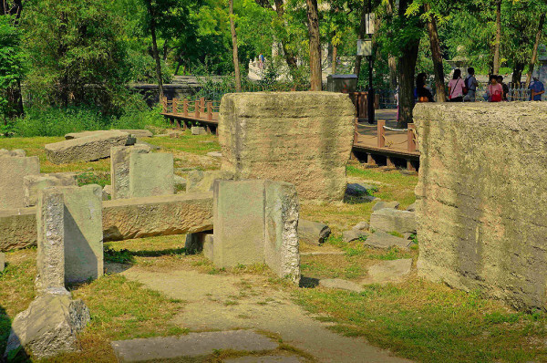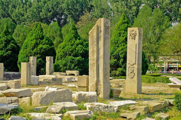 这里原是一座乾隆帝为香妃建的清真寺,名曰“方外观”,现在只剩下几根石头在此了,昔日的辉煌只留下残石孤影,