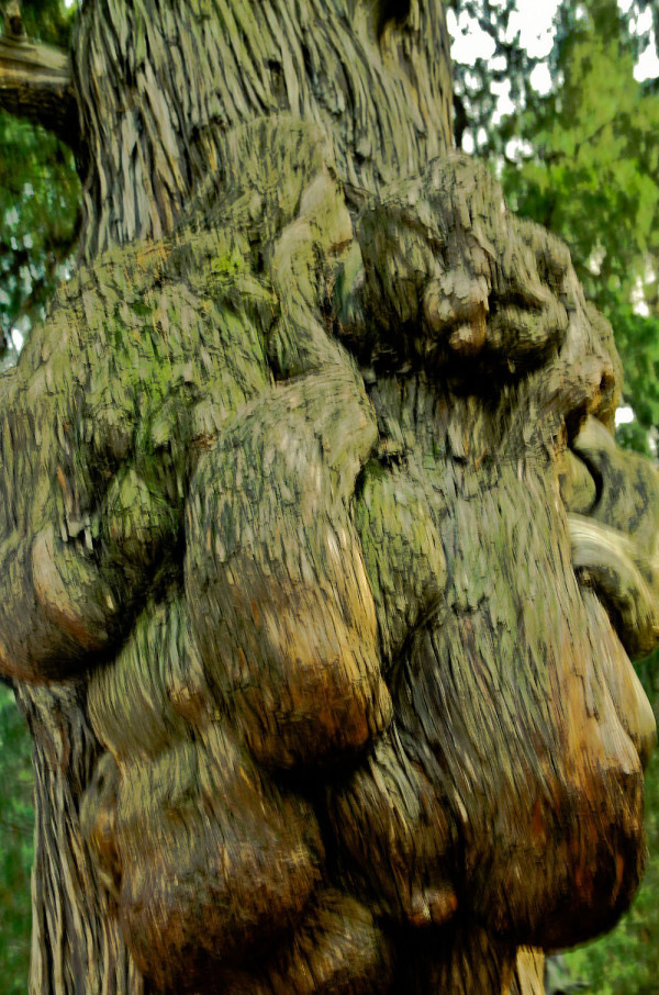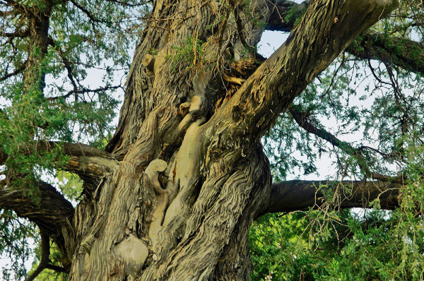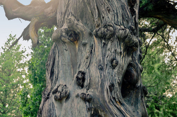 由于年代久远,饱经风蚀,许多树体裸露、扭曲、凸凹、断裂,早现老态龙钟。有的状若堆石累卵,有的形同缠筋绕肠,