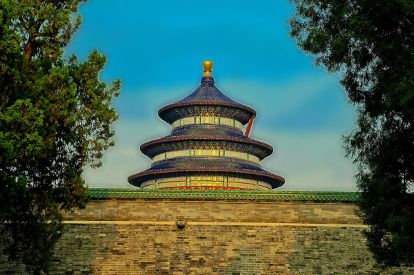天坛,始建于明永乐十八年,由祈年殿、祈年门皇乾殿以及皇穹宇和圜丘组成,是明清两朝皇帝祭天祈丰收的地方,也是现存最大的一处坛庙建筑。