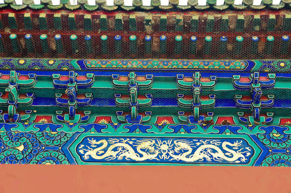 祈年殿平面为圆形,围墙北圆南方,象征“天圆地方”。殿中央四柱代表四季,外圈十二根柱子代表十二个月和十二时辰。