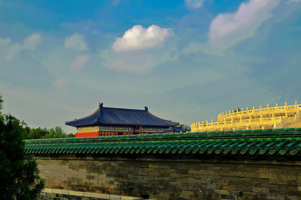 古柏借天坛传名,天坛凭古柏增辉。没有古柏,天坛不会有现在这样得誉于海内外的身价和名气。时光剥蚀了古殿檐头浮夸的琉璃,淡褪了门壁上炫耀的朱红,坍记了一段段高墙又散落了玉砌雕栏,唯这空灵的树影能横亘历史,