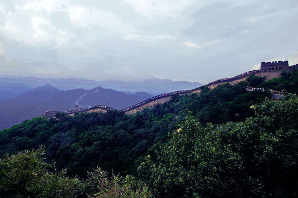 站在八达岭最高的箭楼里,眺望长城内外墨绿色的山,眺望顺着山岭延伸到远方的长城,也许走了太多太多的路,也许是承受了太重太重的负荷,长城于是踏过雾霭弥漫的群峰,在云雾中显得飘逸而轻盈。