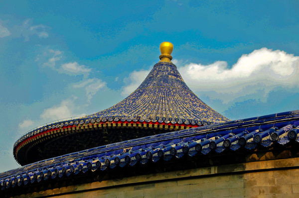 圜丘很特别,从里到外分三层,每层都有三个扶手,三级墙阶,三三得九,犹如九重天。
