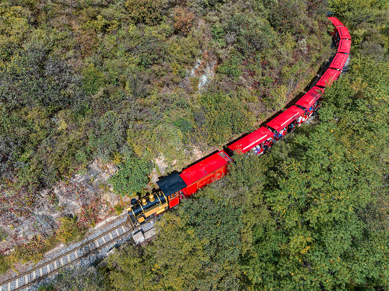 踏入双龙峡,仿佛步入梦想中的童话世界。峡谷两侧绿水青山,初秋的时节已有点点树叶泛红变色。溪水潺潺,清澈见底,倒映着蓝天白云和斑斓山色,宛如一幅流动的油画。乘坐古朴的小火车穿行于山林之间,仿佛穿越时光隧道,每一帧风景都令人心醉神迷。