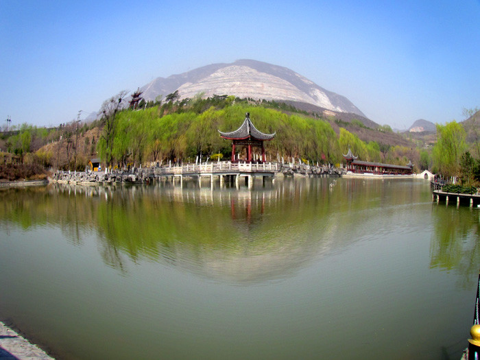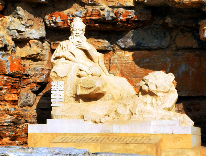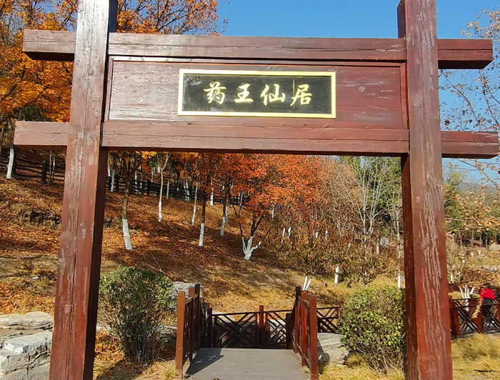 顺着右手方向的碧水岸畔,往园中行走深处不久便是药王仙居,这里的小路开始出现了缓缓的上坡,逐渐人们就会顺着小路开始登山了。经过一座木桥来到药王谷远眺是一座雕像,来到近前一看,原来是药王孙思邈先生的雕像。记得上次来时并未发现这一景观。