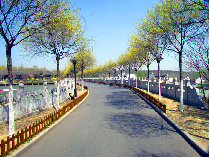 同学们走进公园,只见明媚的春光洒满了北宫国家森林公园里的每一寸土地。漫步于公园里平整的柏油马路上,进门不远,映入人们眼帘的就是小江南春色宜人的景象。顺着碧水岸畔,绕过小江南往园中深处不久,小路开始出现了缓缓的上坡,逐渐人们就会顺着小路开始登山了。