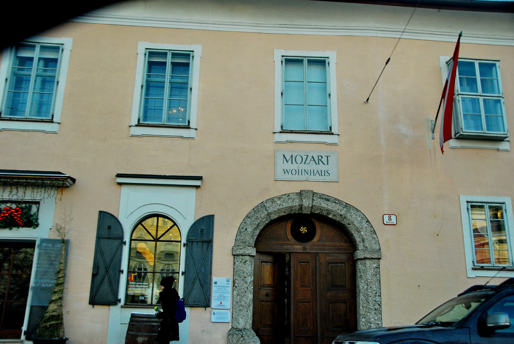 在萨尔茨堡的莫扎特广场,在绕了一圈没有发现合适的停车场后,发现了几个规规矩矩的停车位。一头就在扎了进去。