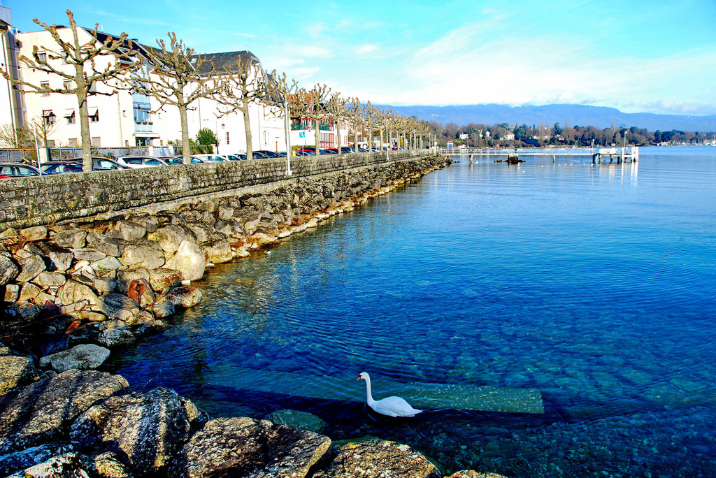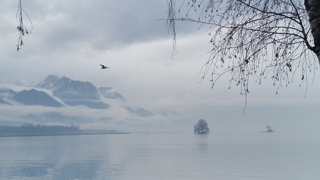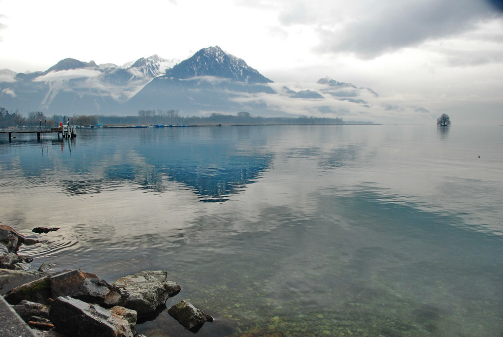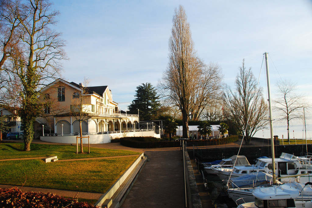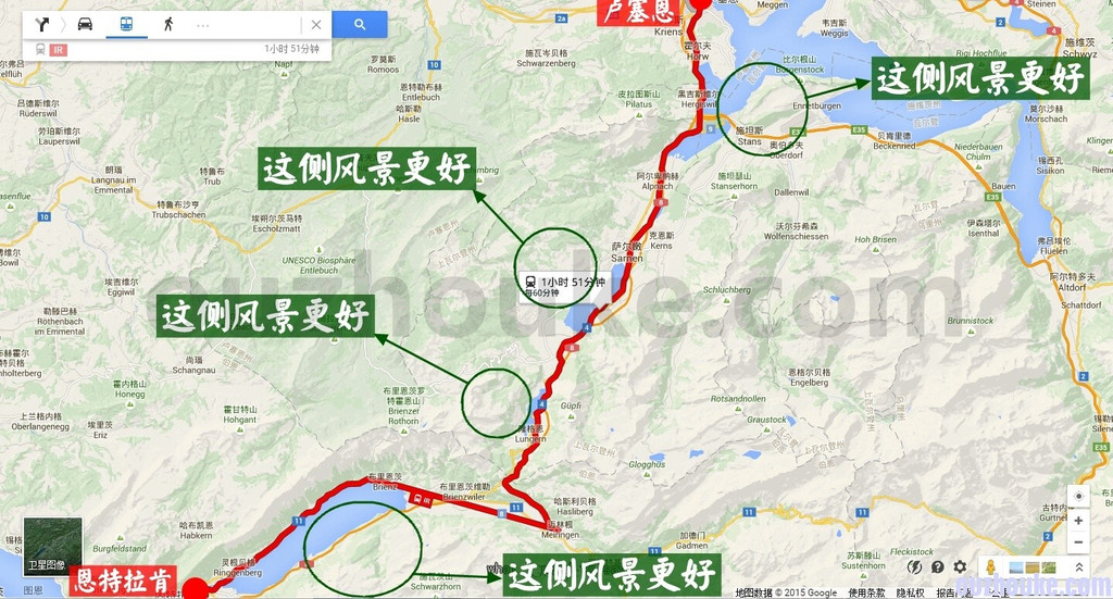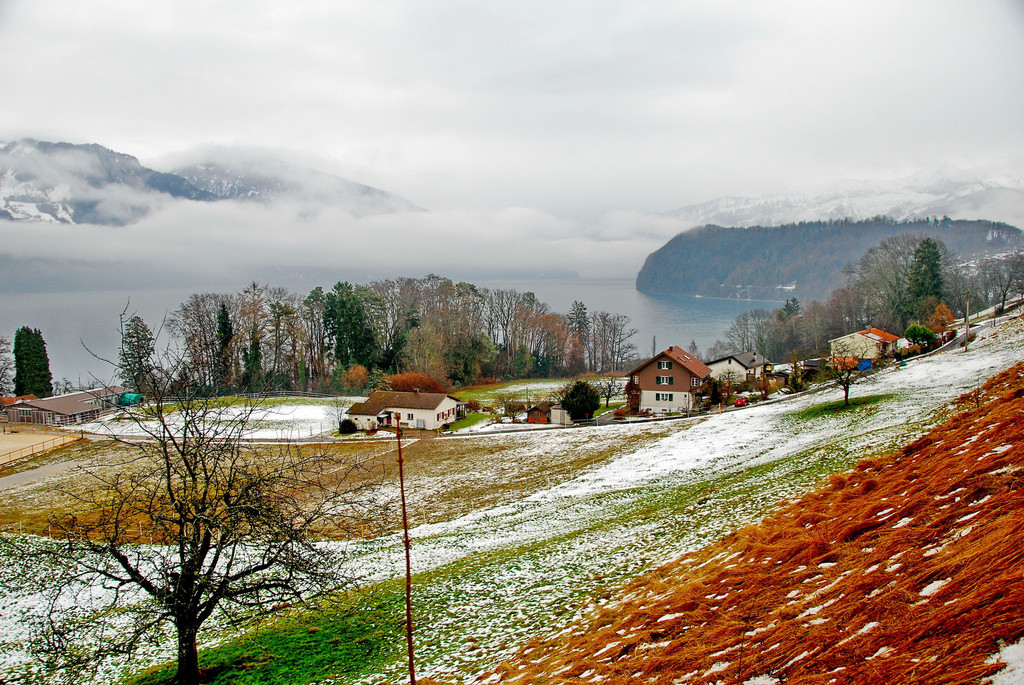 我们住在卢塞恩前面的佛吕埃伦小镇的这个湖滨酒店,景观很好!: