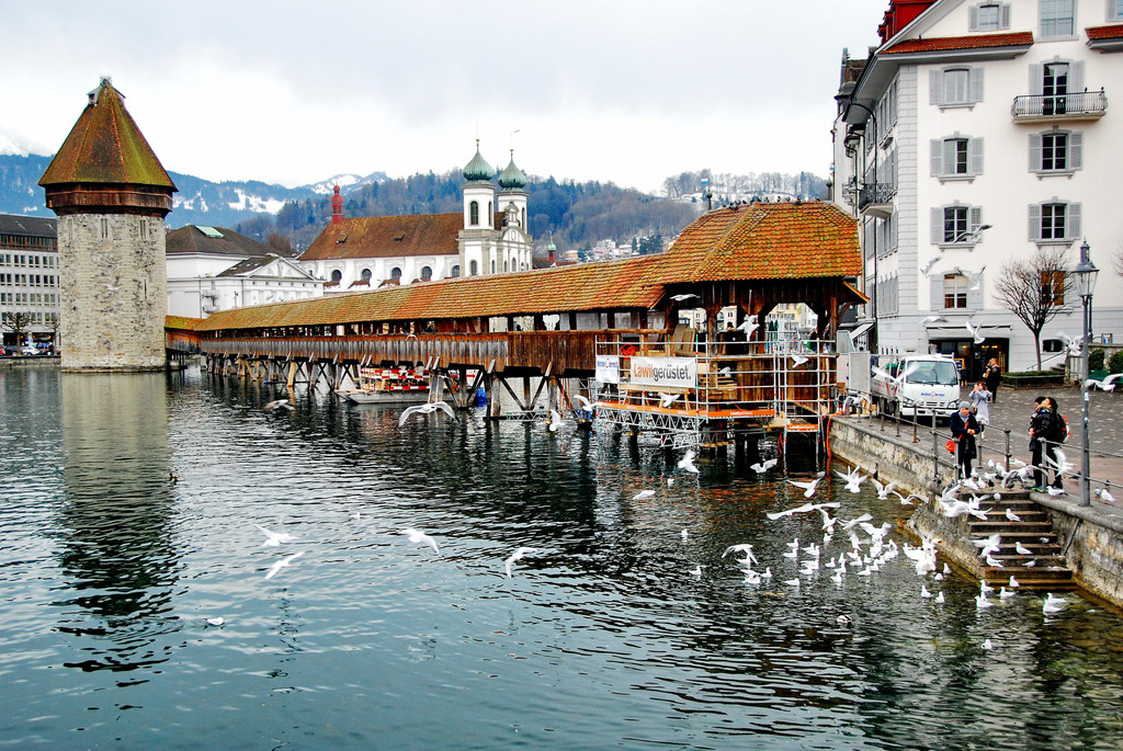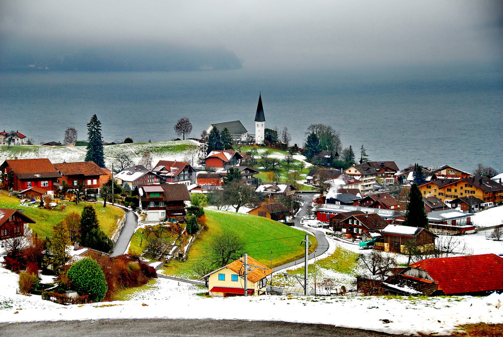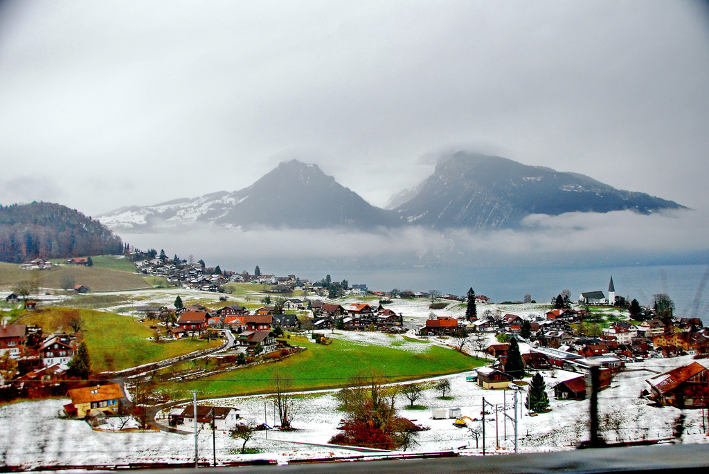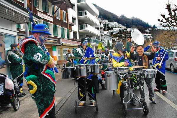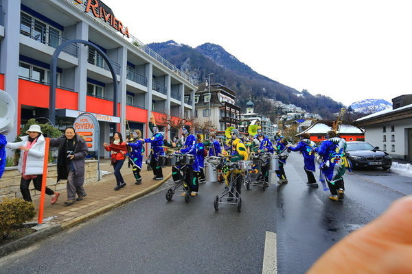 在去卢塞恩的路上,经过这个小镇,遇到一队庆典的队伍,敲锣打鼓,奏着欢快的乐曲,好不热闹:
