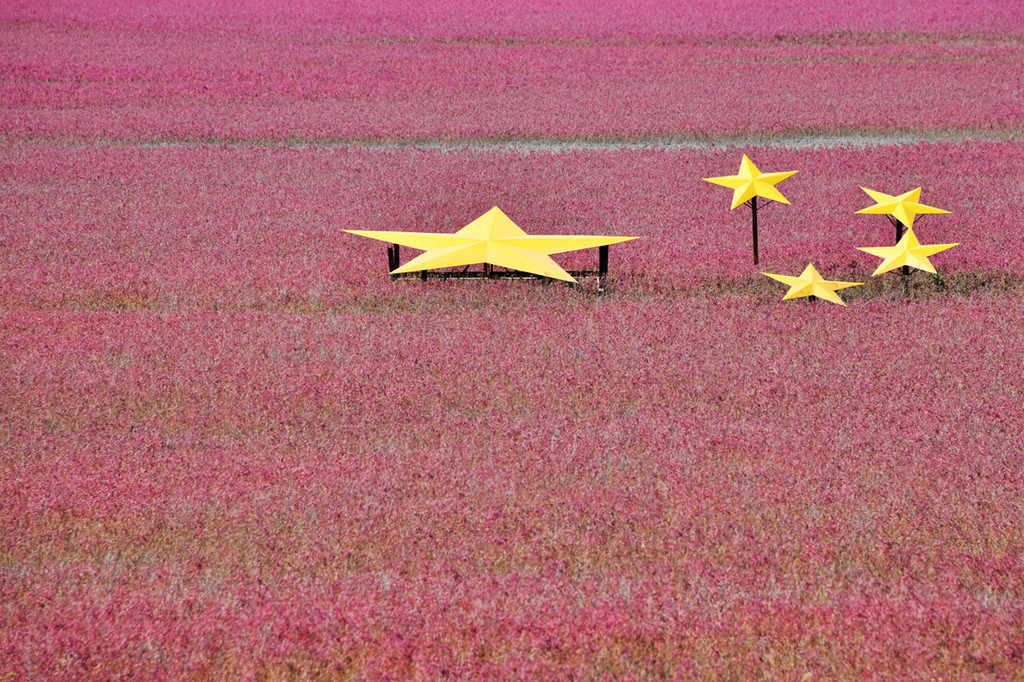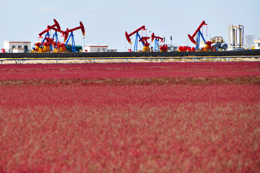 鲜红似火的红海滩+金黄色的“盗梦空间”