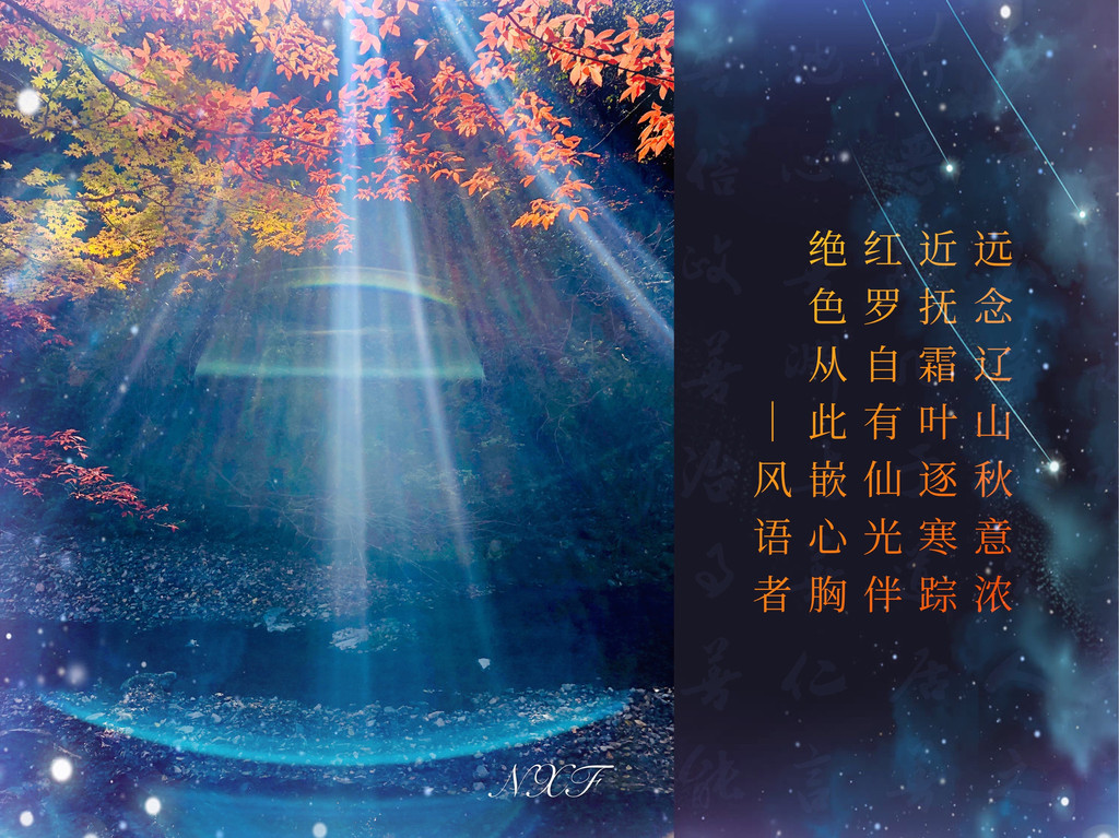 拍到一张非常梦幻的枫叶片,同学风语者题诗一首: