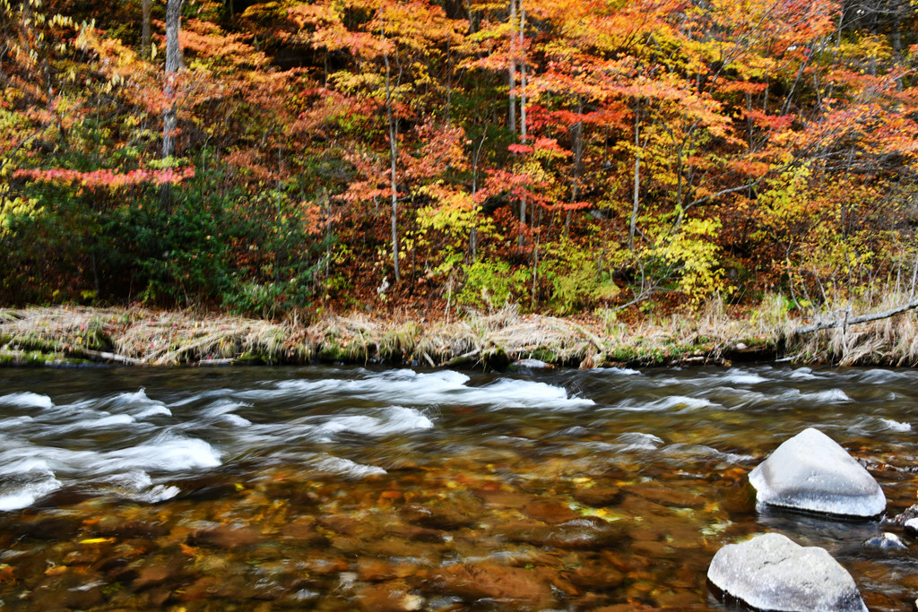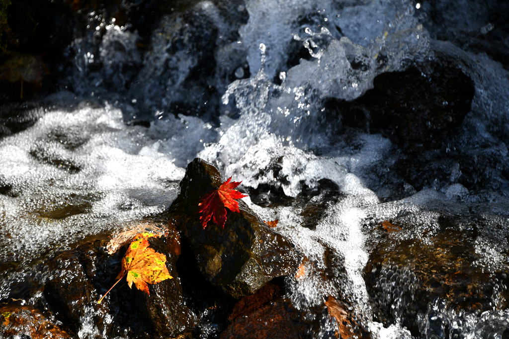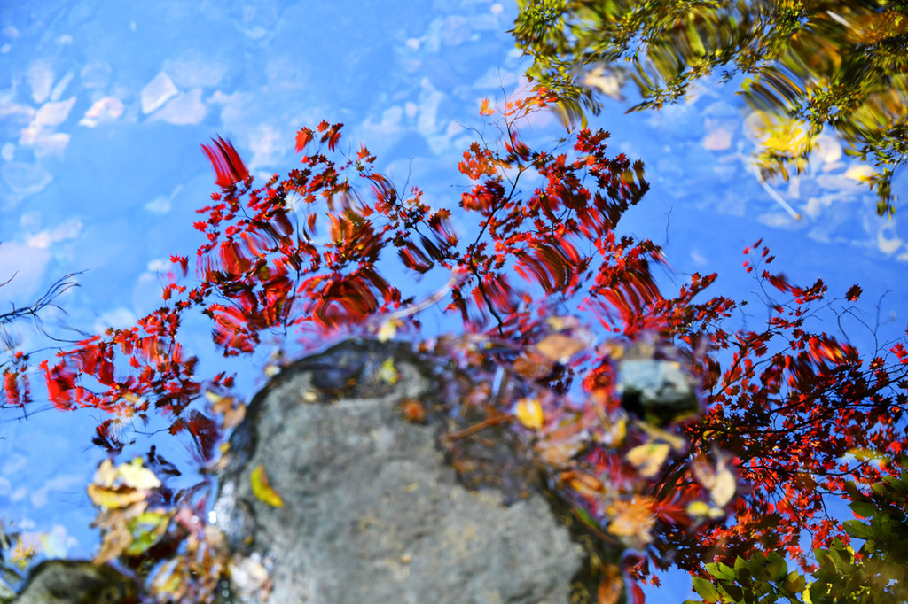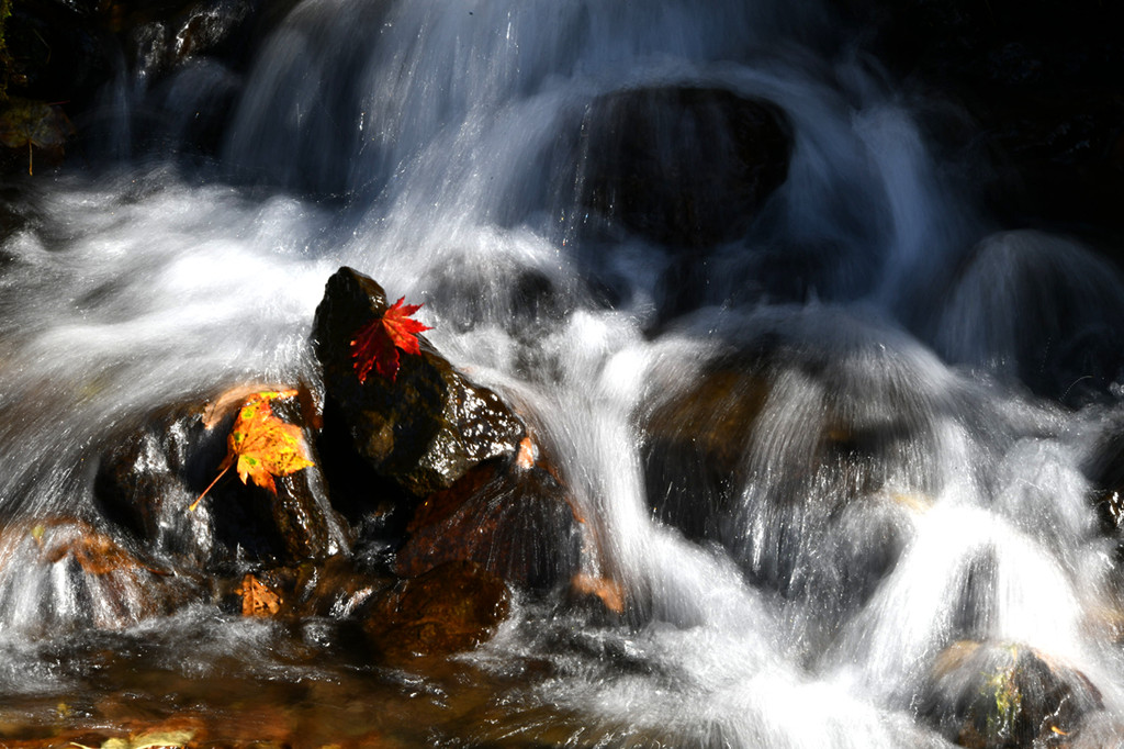 走进关门山,天气很好,心情大好。虽然枫叶只红了三分之一,但足够亮丽!沿途见到山路一侧一棵棵红枫倒映在溪水之中,早上柔和的光线特别的漂亮,恨不得跳下车来徒步边走边拍。