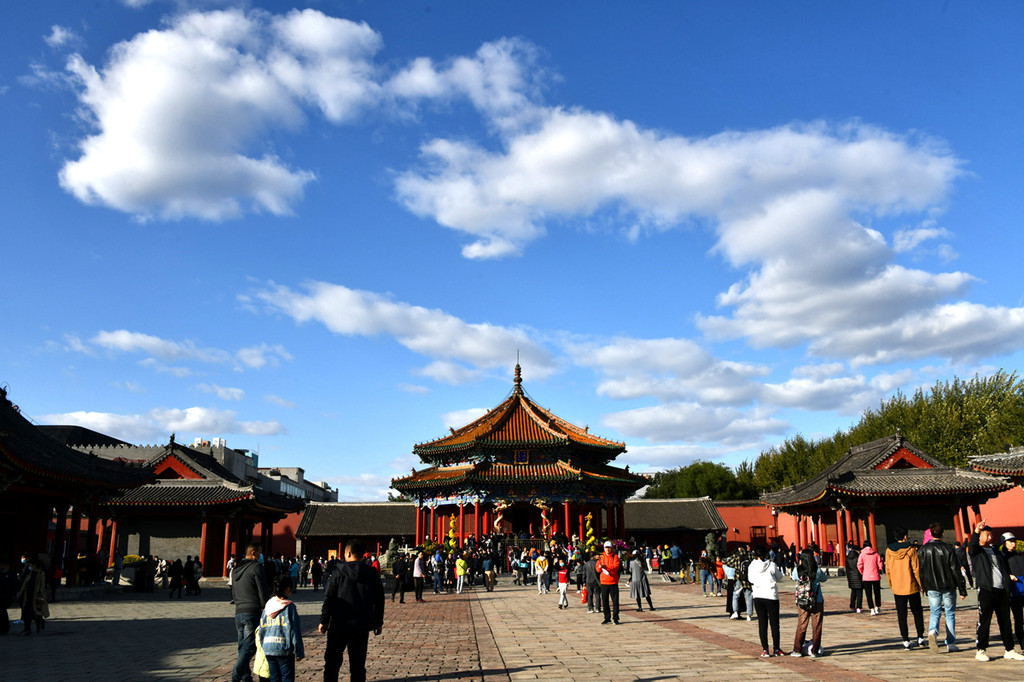 沈阳市可转的地方不多,沈阳故宫是其中之一。沈阳故宫,是沈阳的一张名片,为清朝初期的皇宫,始建于1625年,是中国仅存的两大皇家宫殿建筑群之一,也是中国关外唯一的一座皇家建筑群。其大小气势藏品虽不能与北京故宫相比,但依然是皇家气派,黄色琉璃瓦顶红色砖墙,处处凸显皇家风范。面积不大,但其有特殊之处,其建设分为三段建成:右侧部分为努尔哈次所建,中间部分为?所建,左侧才是清朝乾隆年间所建。是皇帝为了方便朝拜长白山,下榻的地方。后来作为陪都。