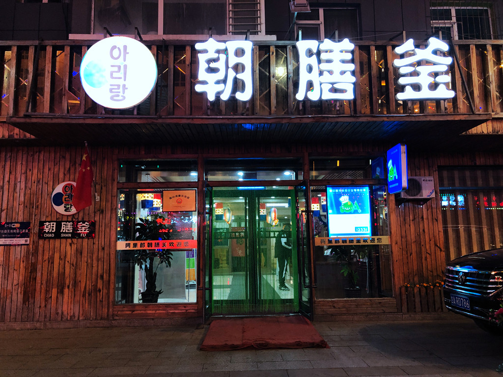 当晚住志诚园宾馆,一家位于鸭绿江边的新宾馆,位置和设施条件俱佳的宾馆,感觉像是政府接待宾馆。前台推荐们去“朝膳釜”品尝当地特色美食。旅行其中的一大乐趣就是吃当地美食,我们当然不能错过。打的士起步价5元找到酒家。点了人参炖鸡、打糕、黑包子、生烤牛肉、*肉、花丽羔子鱼、凉拌刺五加、泡菜冷面、玉米酒。吃得我们心满意足,真是太好吃了。
