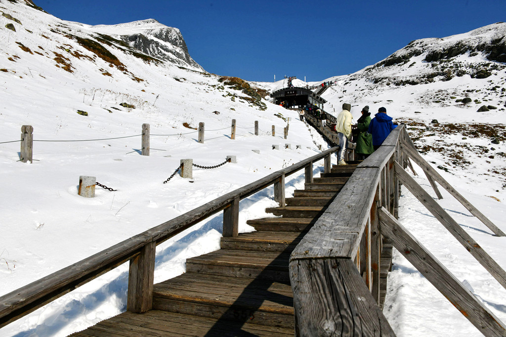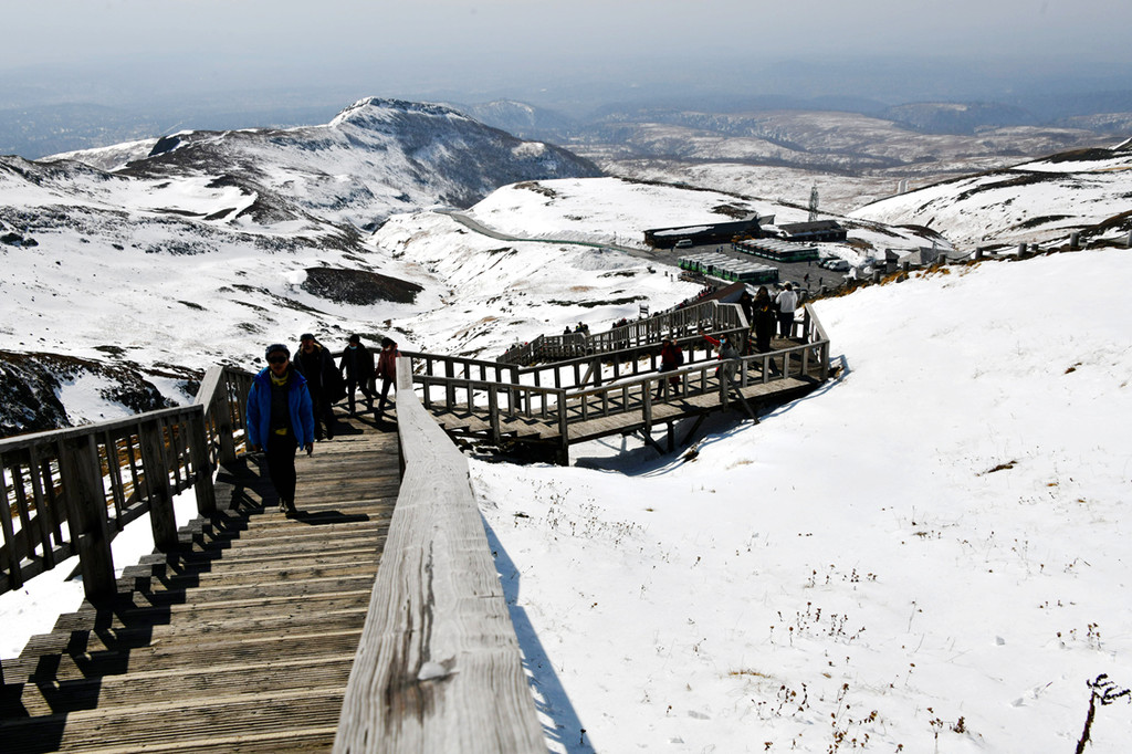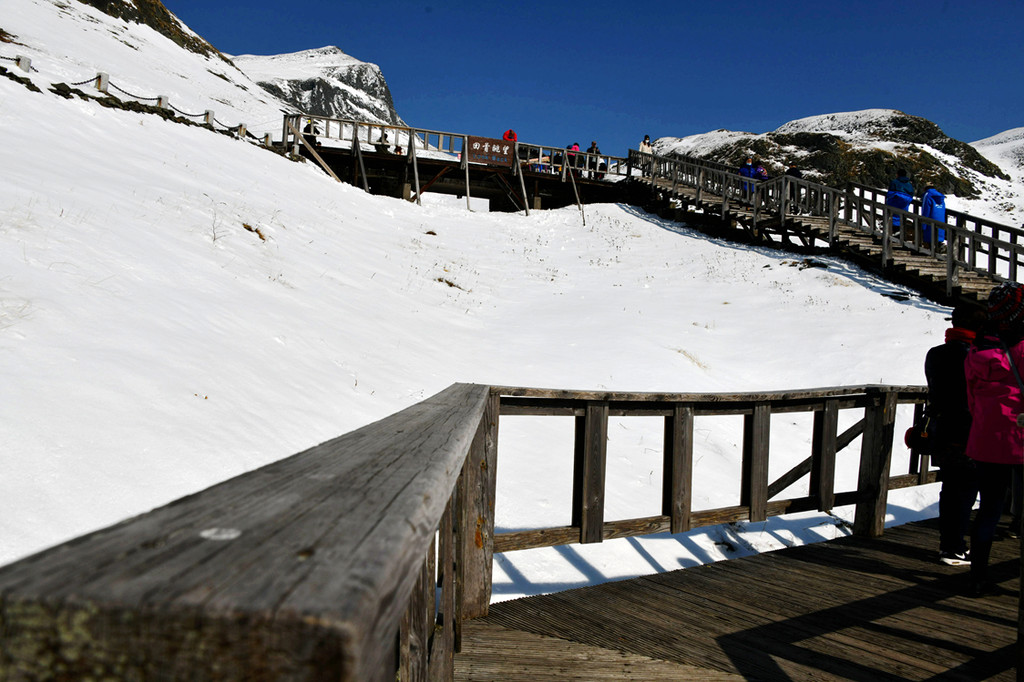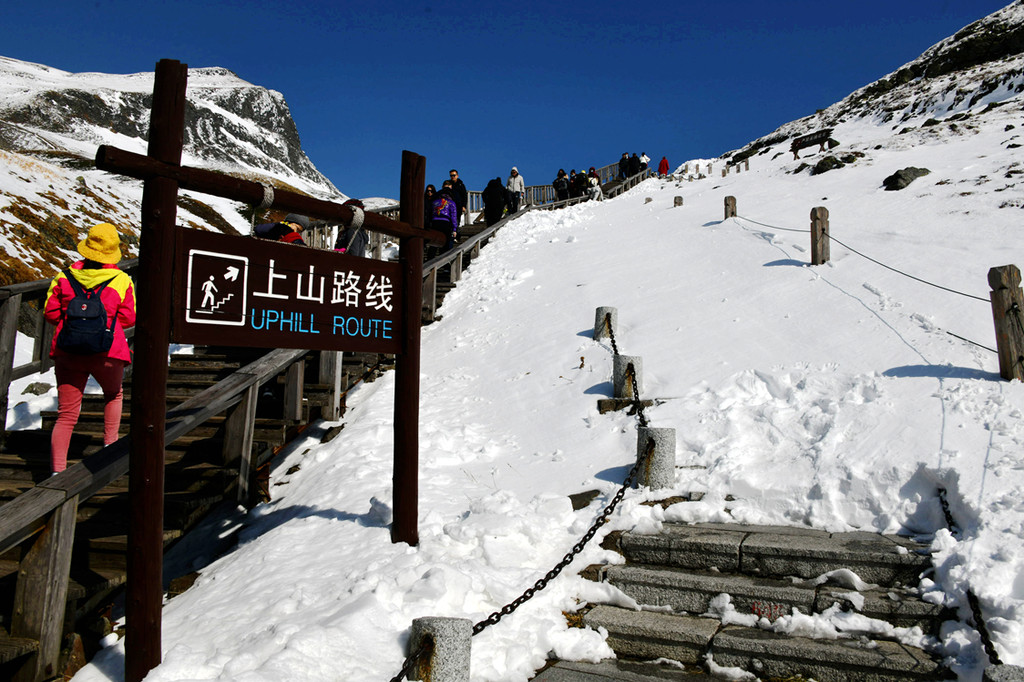 今天的游人不是太多,也许是假期最后一天,人们赶回去上班了,也许因为前几天大雪封山,人们都离开了。我们这个时间差掌握的真好。据说当天从西坡登山的只有700多人,而往常是几万人。