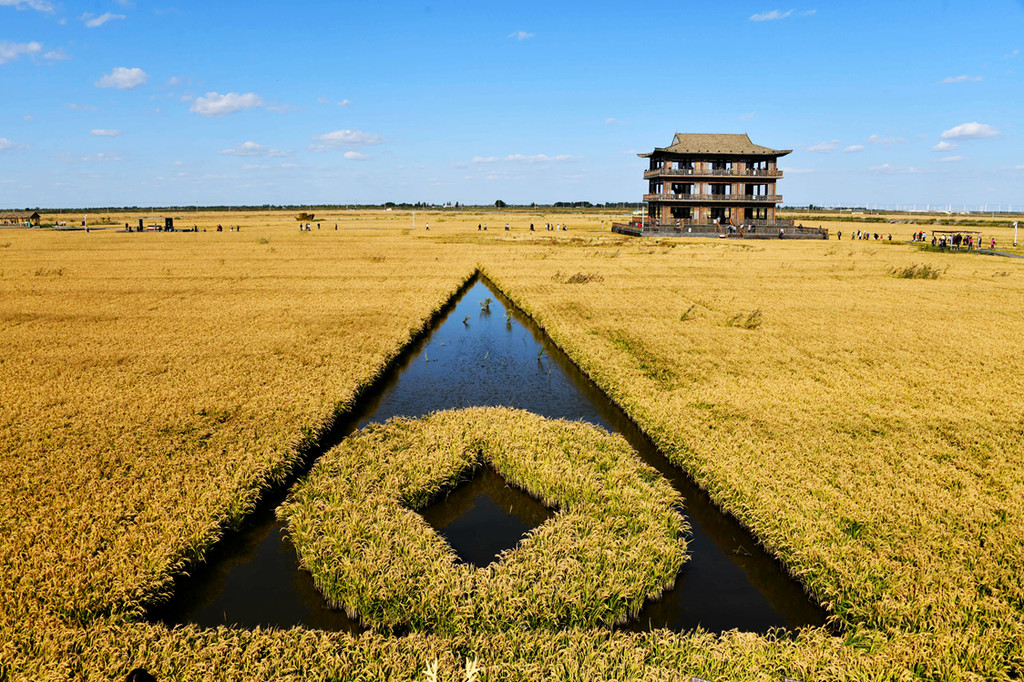 沿着栈道走进田野,近距离的接触那片金黄。沉甸甸的稻穗压弯了腰,带来了丰收的喜悦丰收的景象。一年一造的盘锦大米远近闻名,素有“北国鱼米之乡”之称,被授予“中国的生态稻米之乡的美誉,是盘锦市的一张名片。