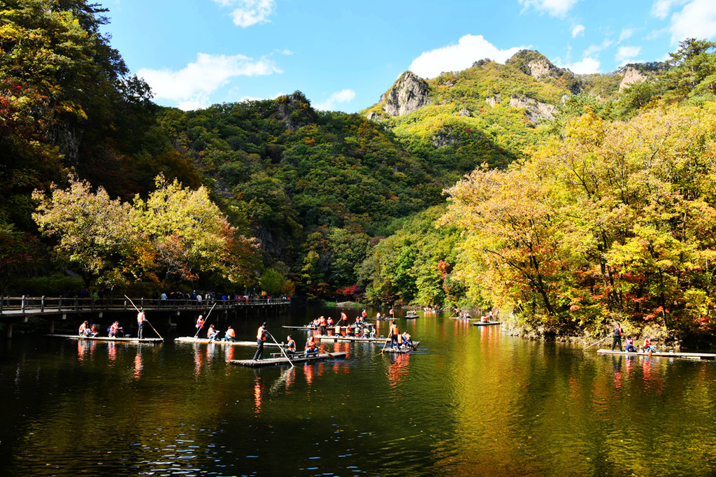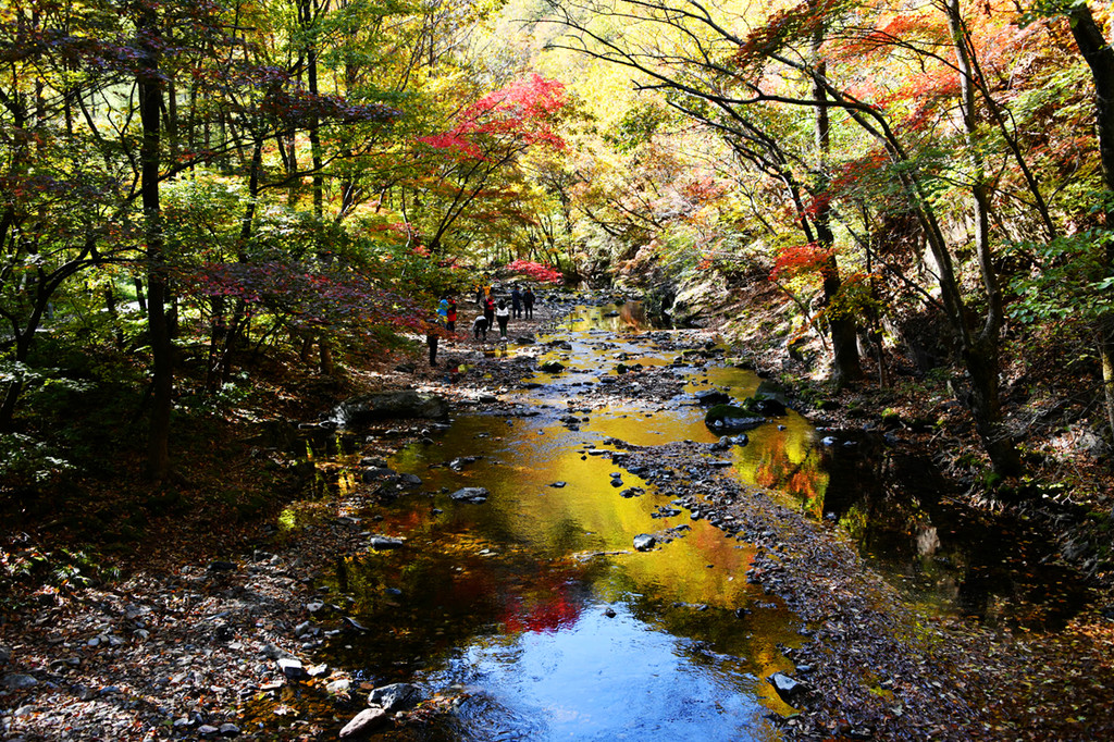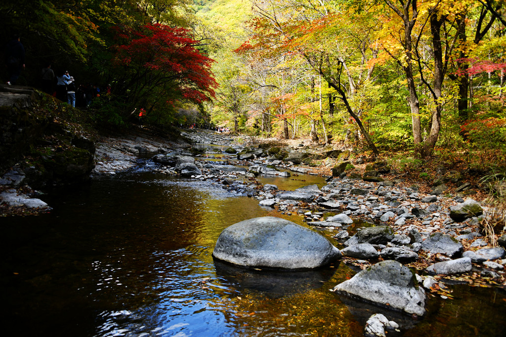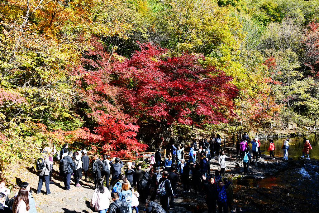 红色枫叶是秋天的色彩,是关门山国家公园的色彩,是我们此行追随的色彩。但关门山的红叶红了吗?红了多少?怀着忐忑的心情走进了位于沈阳本溪的关门山国家公园。