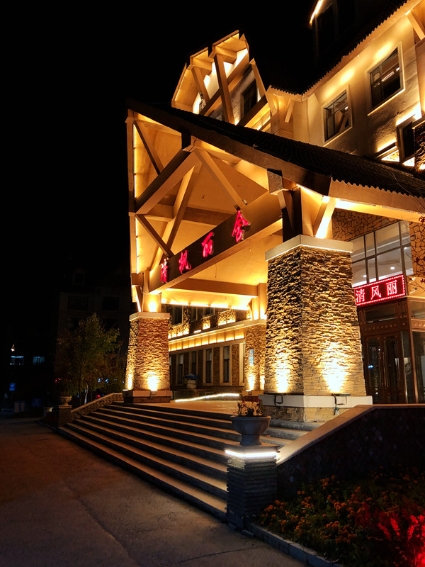 当天晚上住松江河,一个因长白山旅游而生成的小镇,住清枫丽舍酒店,酒店为我们升级免费泡温泉。温泉就在酒店负一层。