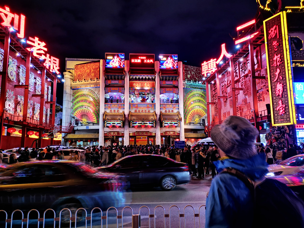幸运的是,我们赶上了正式演出前的户外展示,锣鼓喧天唢呐声声,那个热闹劲啊,盖过了来往车辆的喇叭声。今晚的刘老根大舞台,台柱宋小宝、文松等出场,加上节日和假期,现场火爆。我们免费感受了一下现场气氛,足矣。