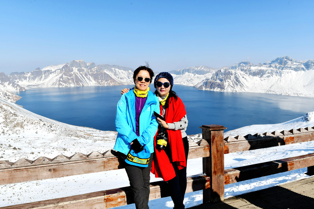 我们真是幸运之人,在金黄色的秋天里,看到了瑞雪中的长白山天池!听说前几天到达的游客,等了三天都未能看到,留下遗憾。