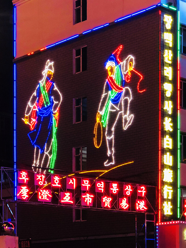 当我们车子驶进延边县城时,令我们诧异的是那里的灯火通明,长白朝鲜族自治县夜晚的霓虹灯绝对超出了你的想象,那可是常年的灯光秀。