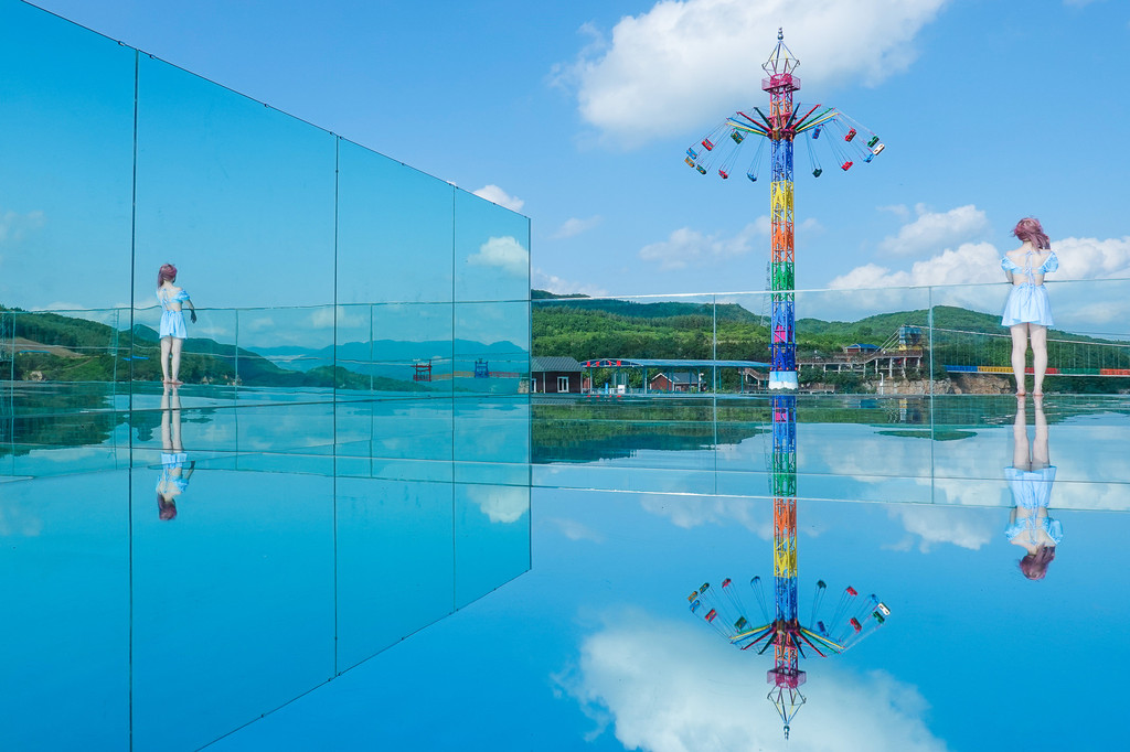 天空之境,青海湖同款、巴厘岛同款,站在上边与天空景色相应,宛如置身仙境。