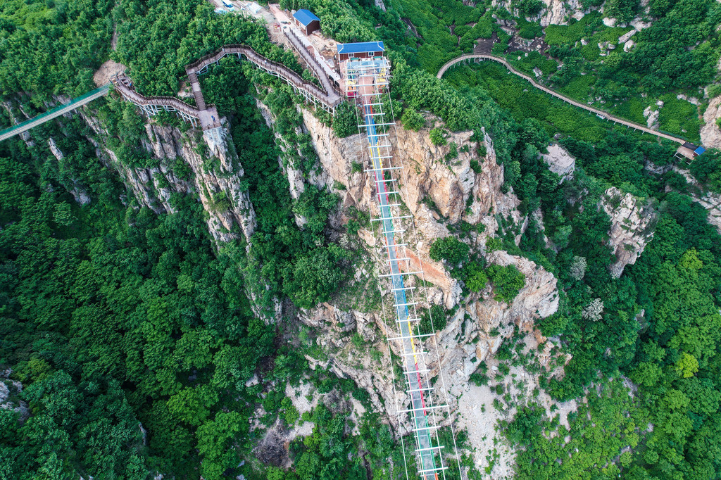 丛林滑道,自崖顶、山间蜿蜒穿越而下,全透明玻璃滑道,是东北第一长玻璃滑道。坐上丛林玻璃滑道,穿过郁郁葱葱的山林树木,在无边的悬崖森林中欢快划过,沿途峡谷风光尽收眼底。