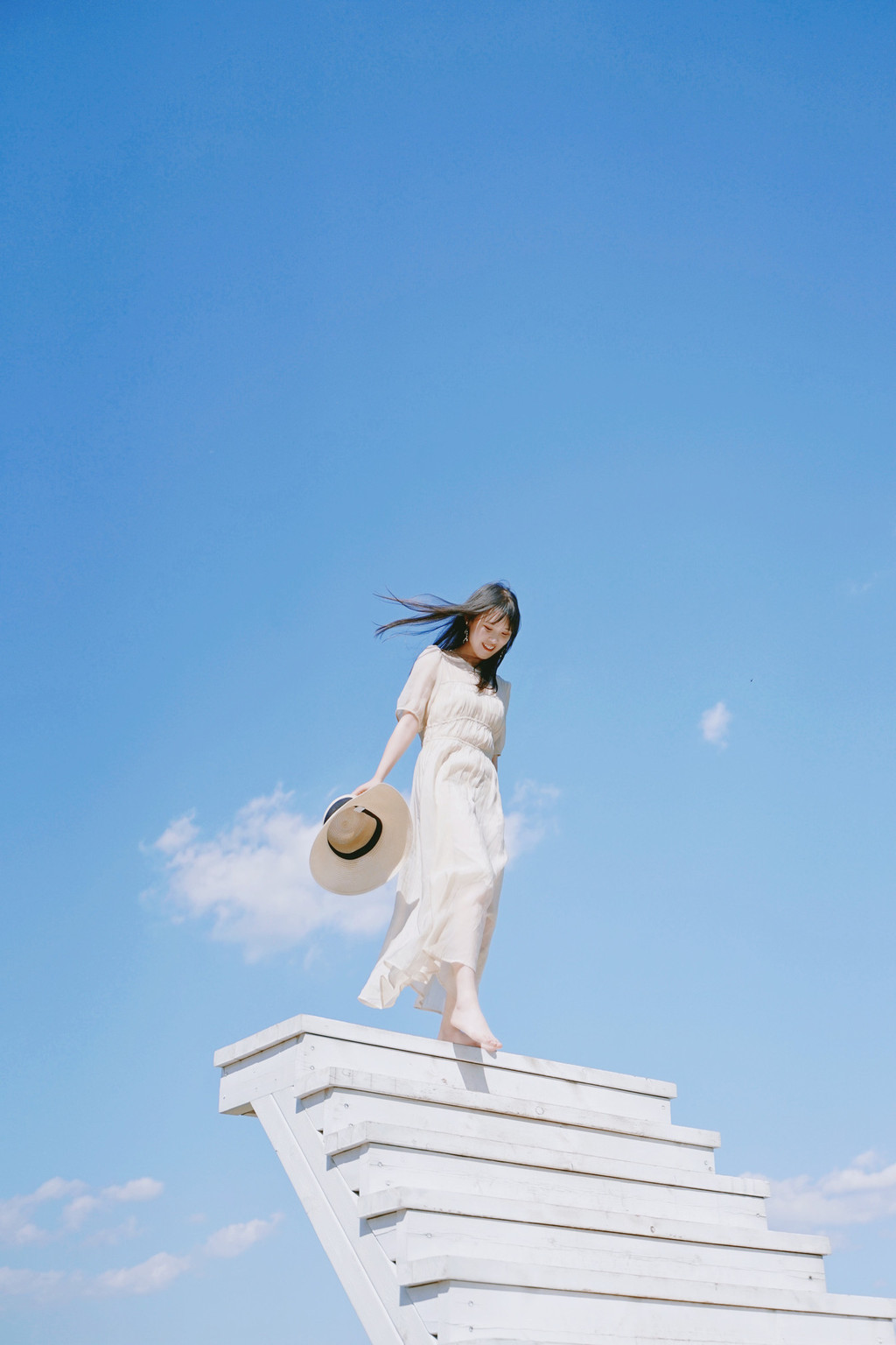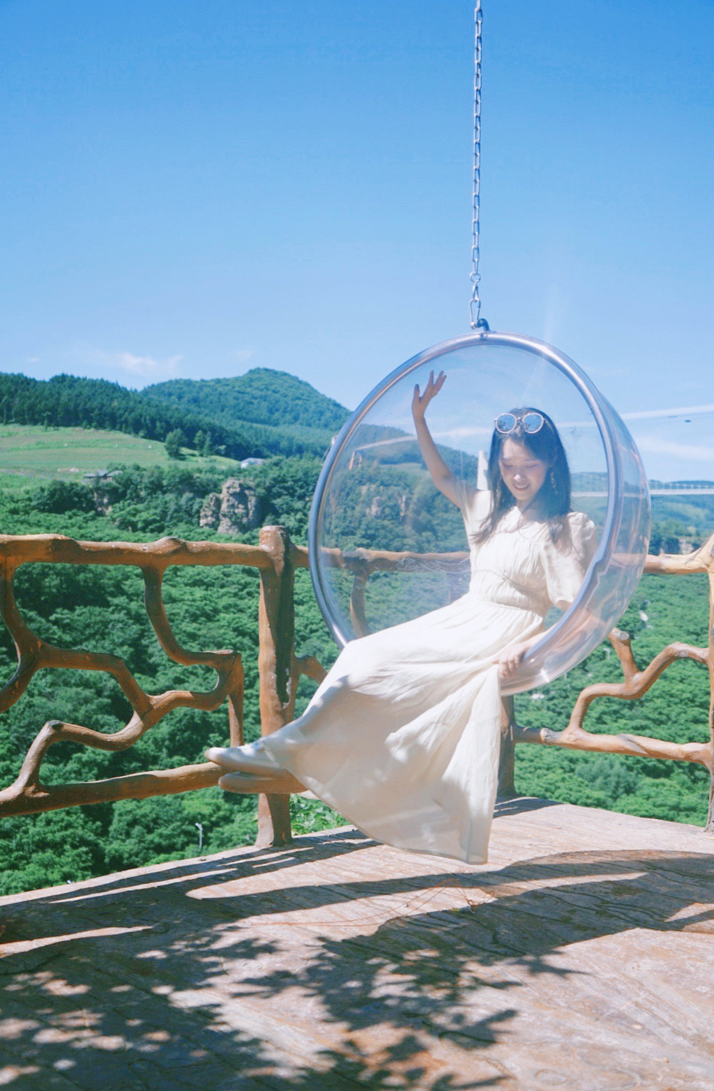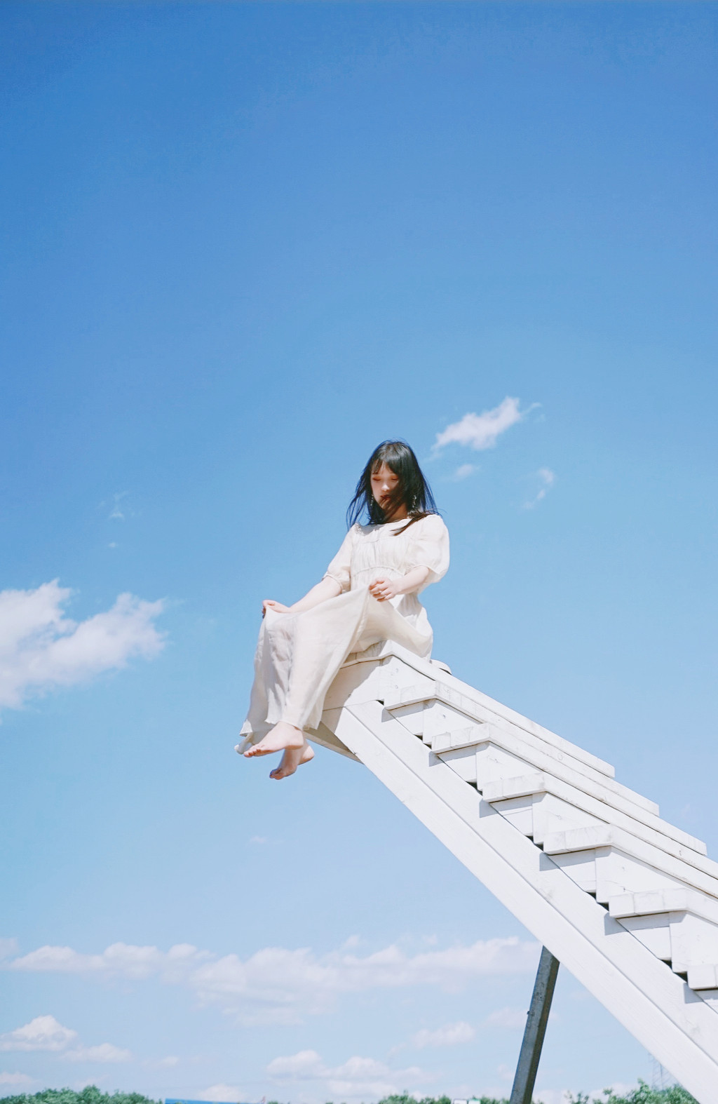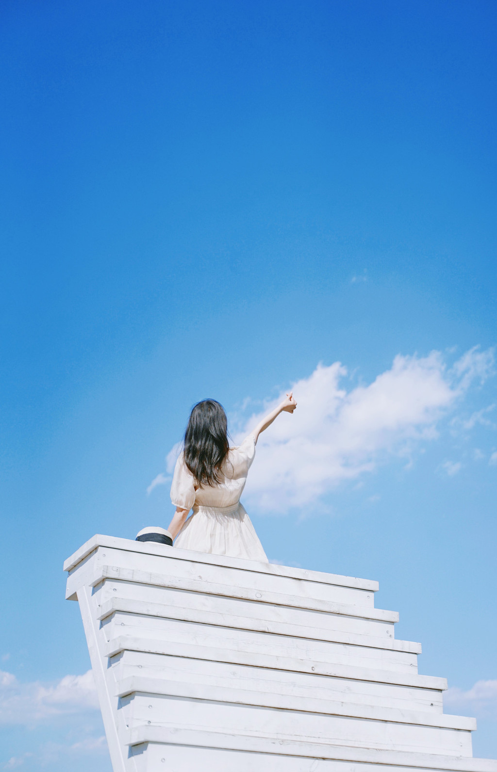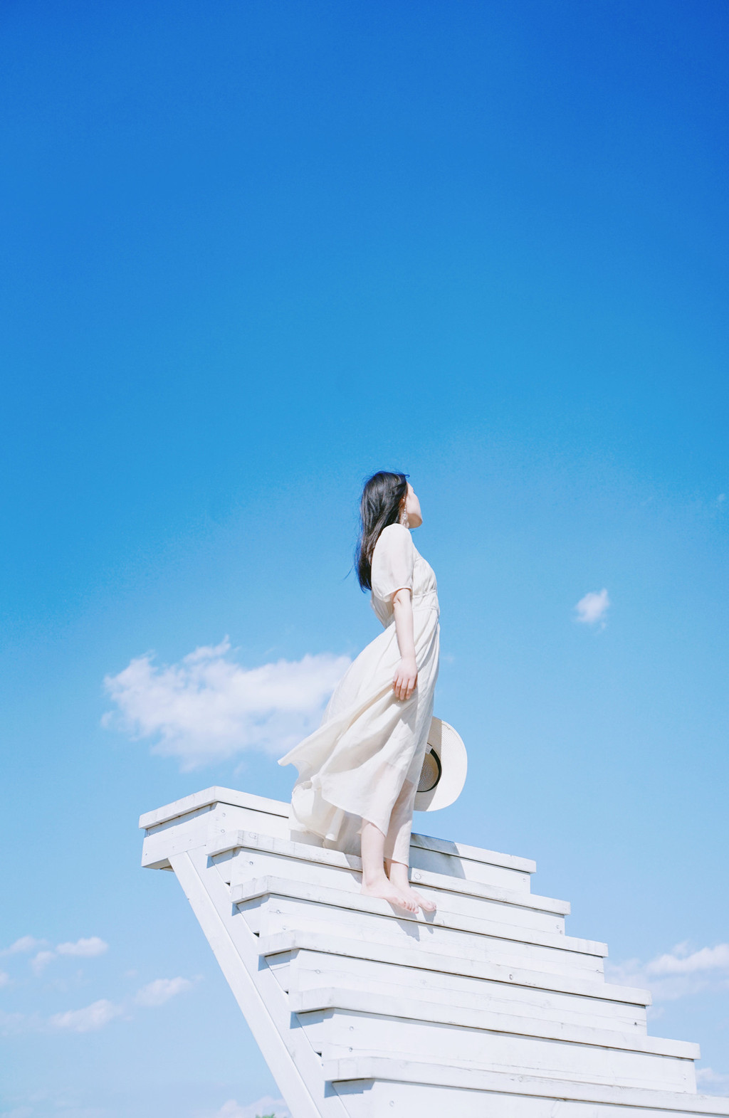 最最喜欢的网红打卡地,是这个纯白色的天梯,藏在悬崖秋千边一个小角落里,却能给人最深的治愈。