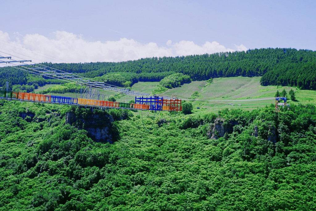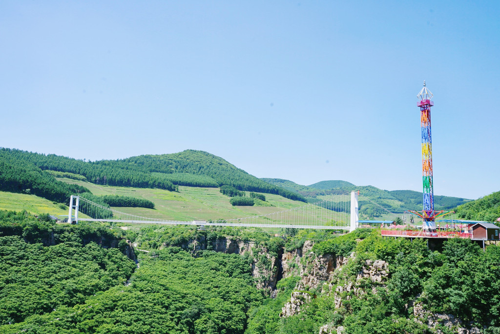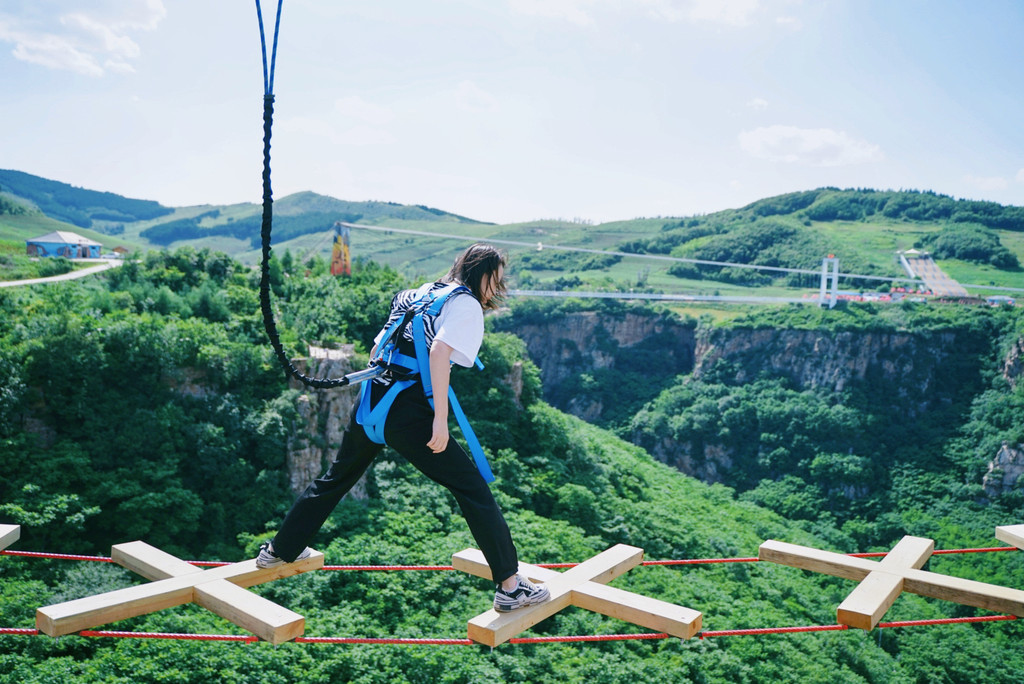 走过108米的悬空走廊,便是悬浮于396米的跨线桥之上的 巴图鲁蹦极。从168米高的跳台一跃而下,体验在大峡谷间自由翱翔的感觉,身心都得到了极大的满足。