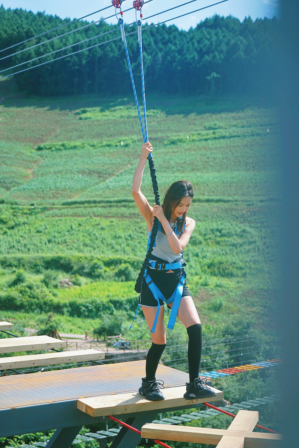 Day2:厄洛斯之手——-空中漫步——悬崖秋千——步步惊心——天梯——幻影——丛林滑道/虎啸栈道下山——七彩云端水滑