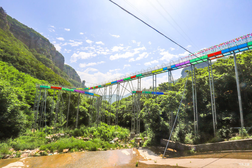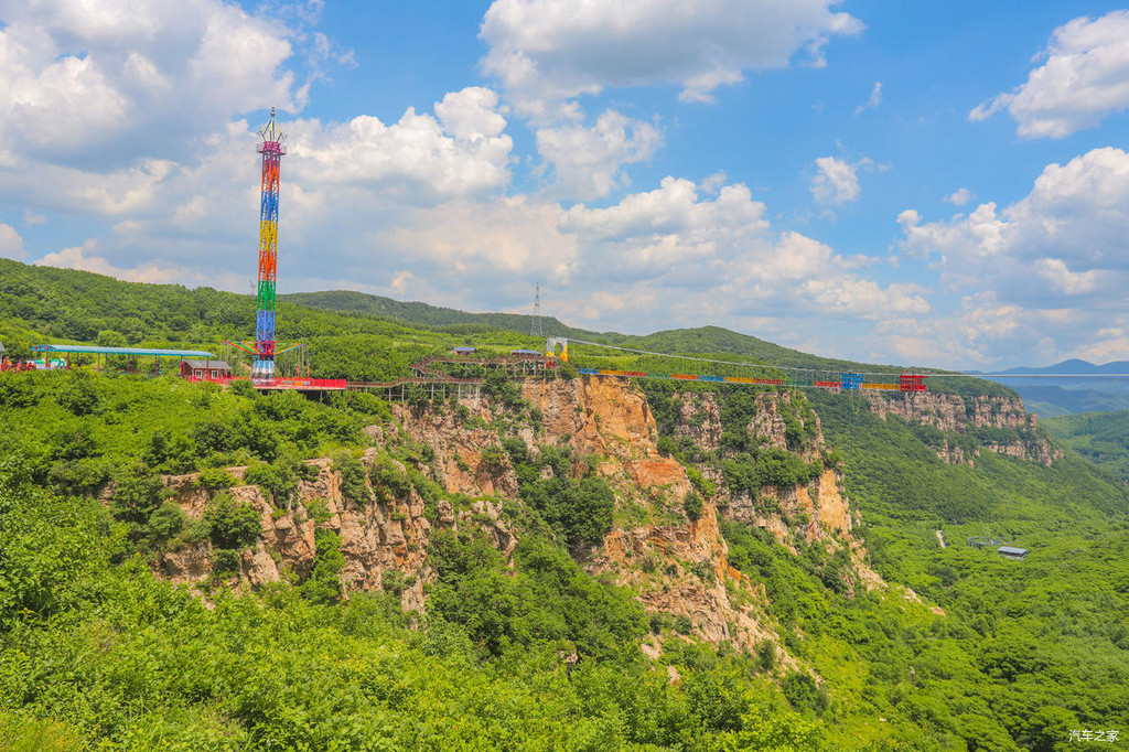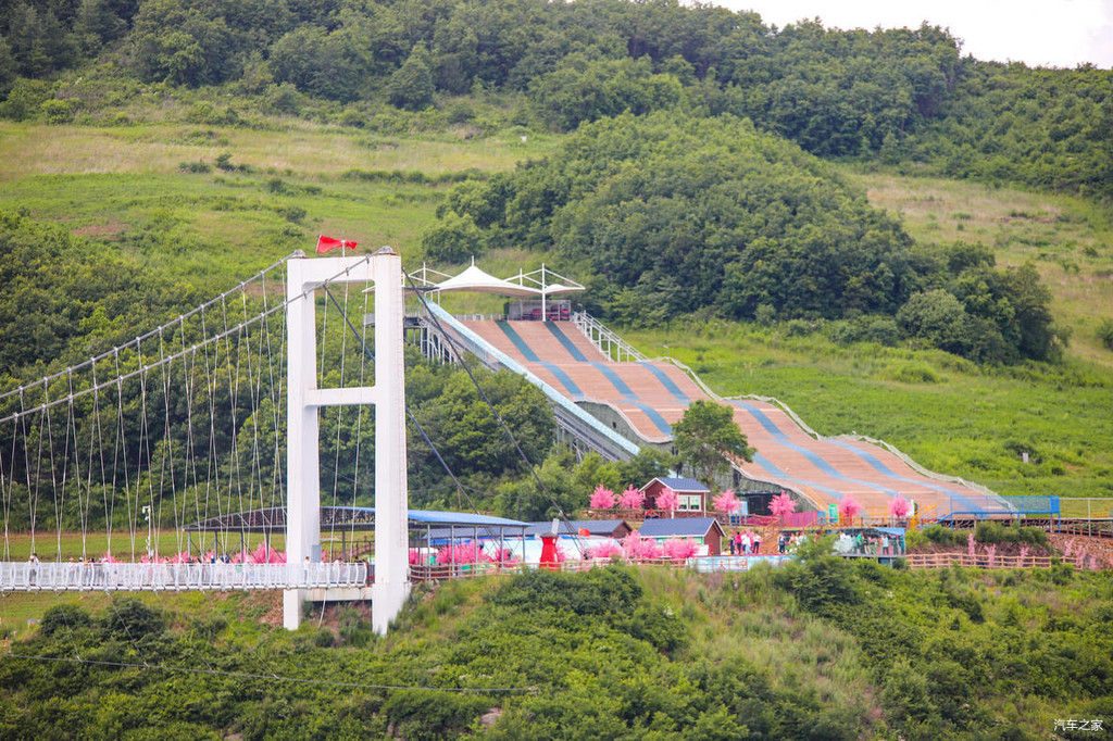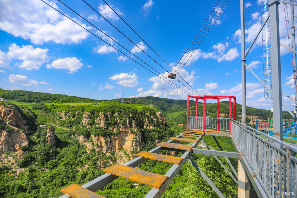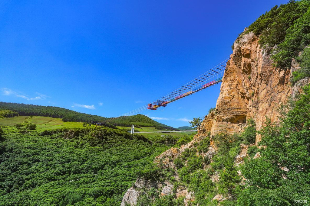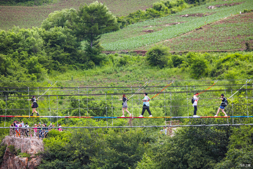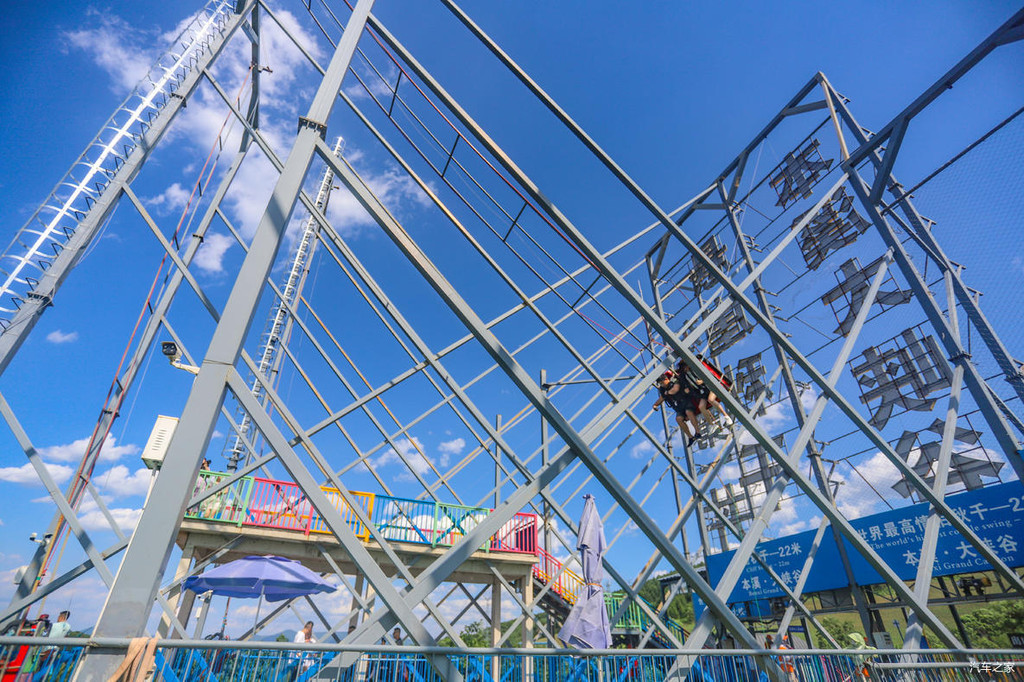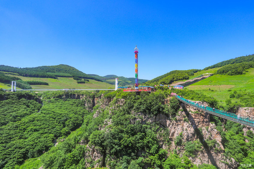 这处“巴图鲁蹦极”平台悬浮于396米的跨线桥之上,跨线桥横跨峡谷南北两端。也就是说如果想要玩蹦极,首先要通过108米的悬空走廊,然后再从168米高的跳台一跃而下,据说时速120公里,下落高度128米,肾上腺狂飙,非常刺激。所以雄鹰觉得,只有勇士或者是喜欢挑战自我的朋友才能去体验蹦极这一项惊险而又刺激的项目。