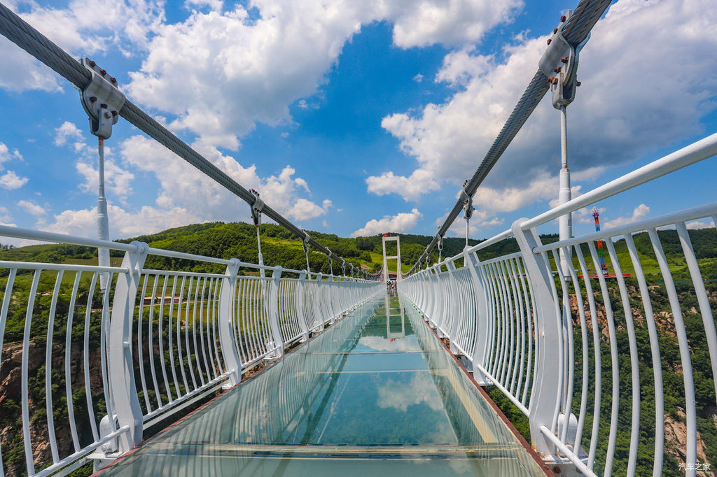 耸立在天空之镜隔壁的这座玻璃吊桥又被誉为东北第一桥。顾名思义,整个吊桥采用透明玻璃铺设,全长369米,宽3米,最高落差158米,相当于52层楼高,站在桥上真有种惊险刺激的既视感。