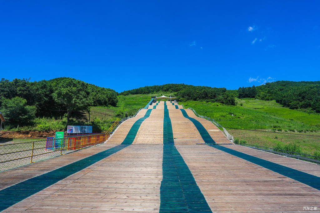 乘坐丛林滑道抵达山腰以后,就可以继续搭乘七彩云端水滑继续下行了。这处水滑全长2019米、全透明玻璃滑道、东北第一长玻璃水滑。
