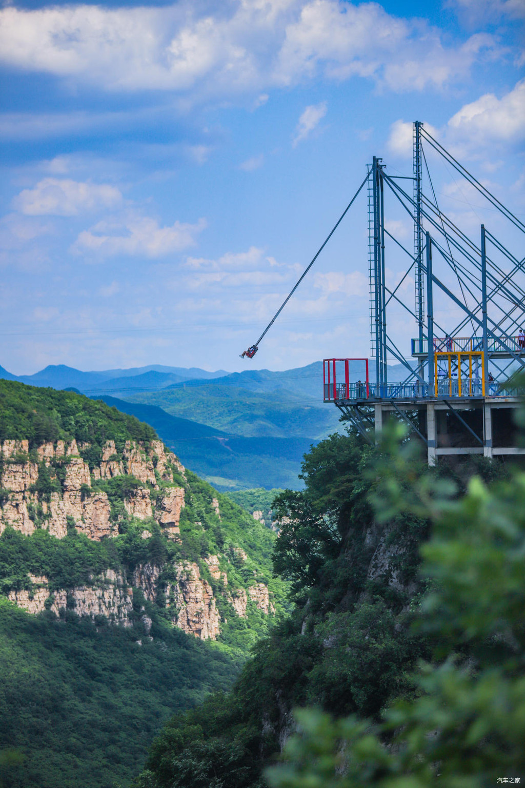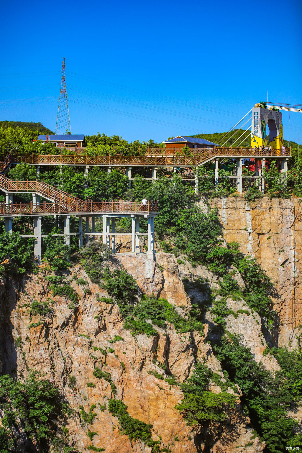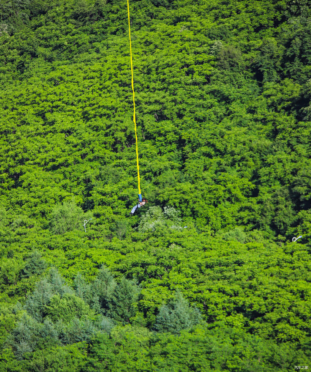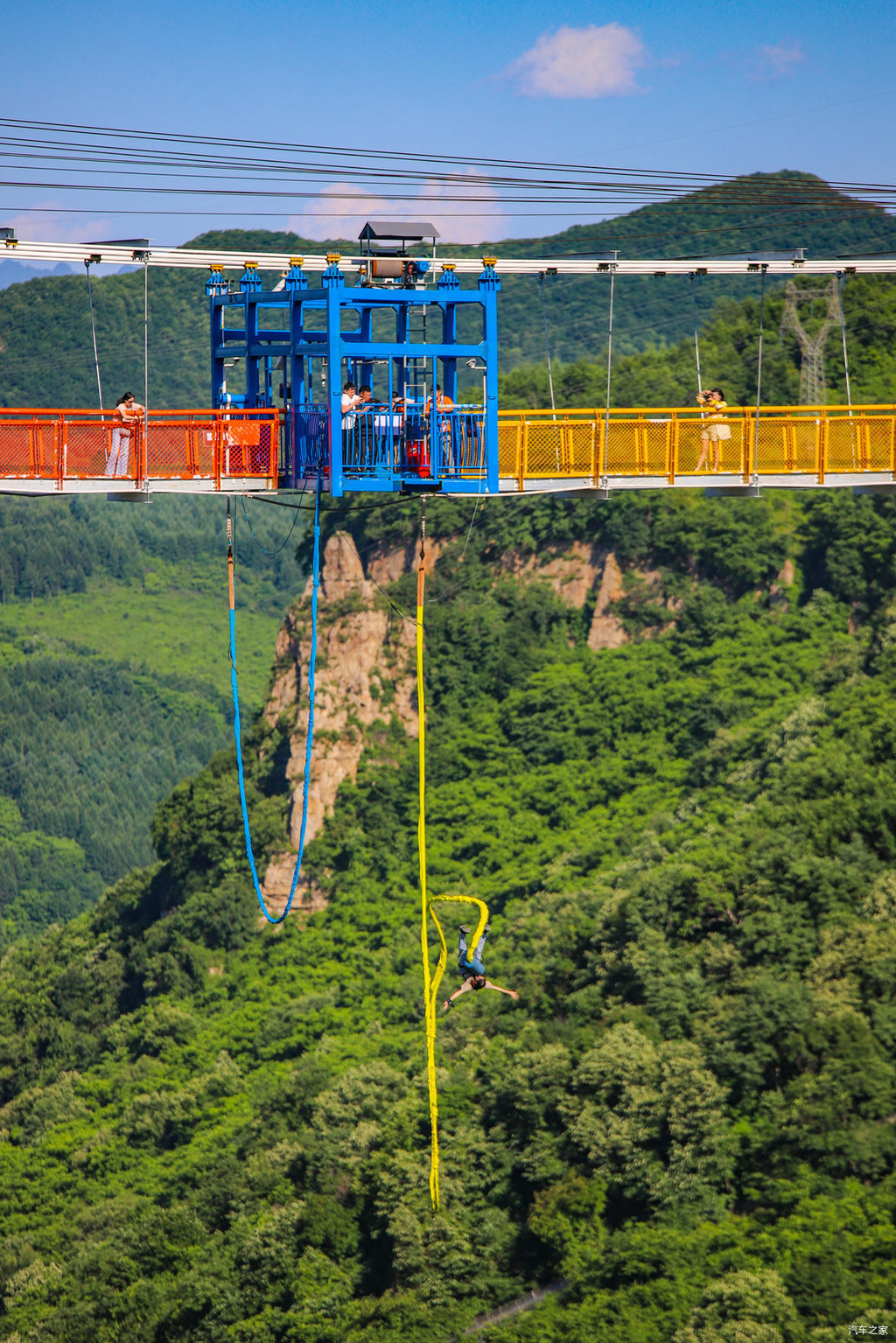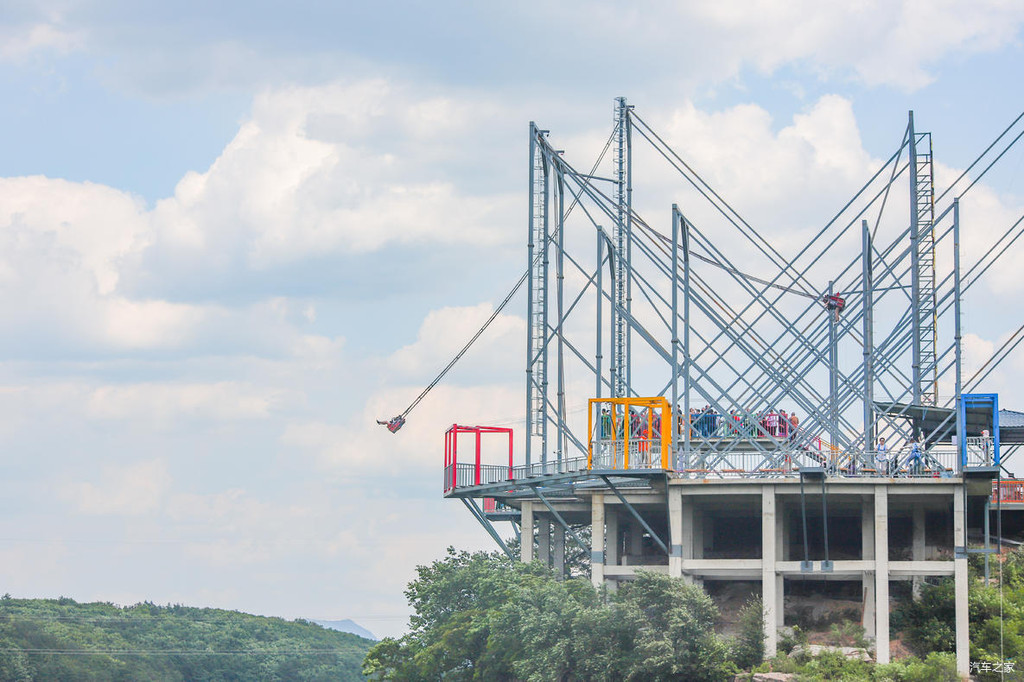 欣赏过仙女湖的风景以后,沿着龙吟栈道继续上行,很快就抵达了“巴图鲁蹦极”的所在地。没错,作为“中国冒险公园”,本溪大峡谷里是可以蹦极的。