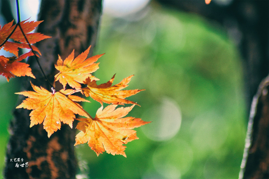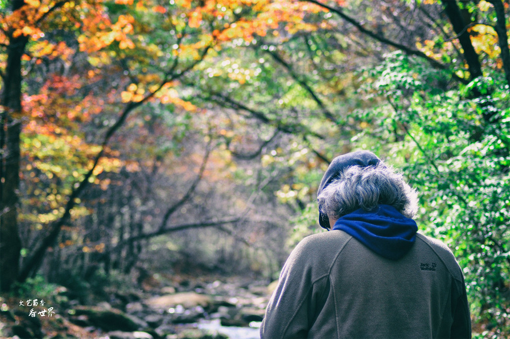 在老边沟赏枫,除了姹紫嫣红以外,我也极喜欢几片绿叶的坚强,它们的存在反而让这里变得卓尔不凡,所以我总是很愿意随手拍摄几片余下的绿叶,也算是对已过去的春天和夏天的纪念。