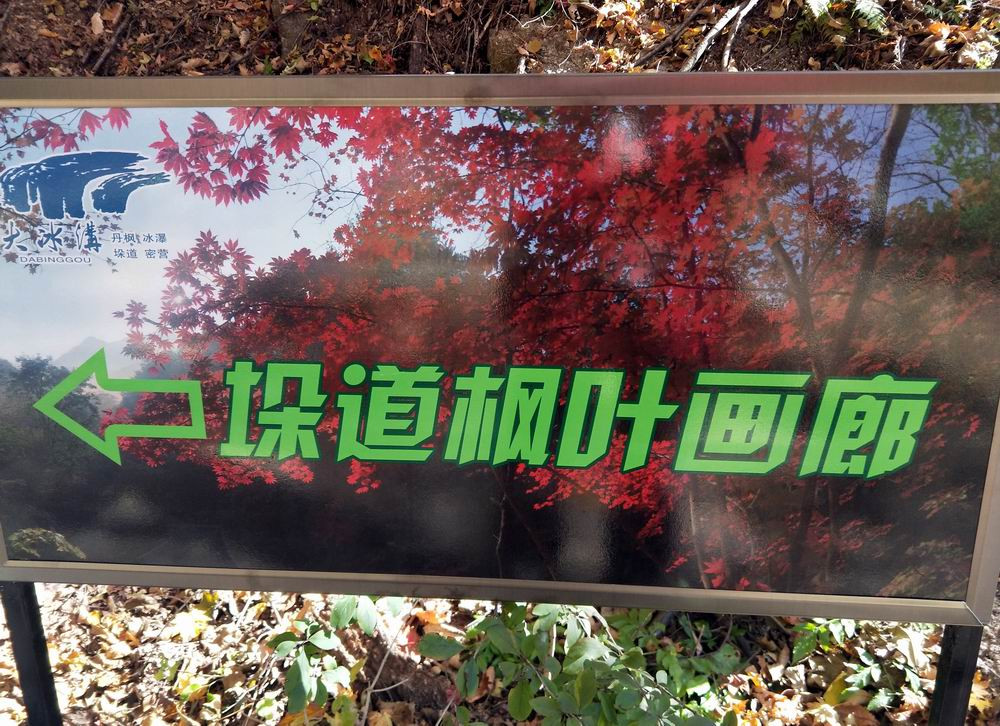 接下来进入大冰沟森林公园的“垛道枫叶画廊”。图为“垛道枫叶画廊”标志牌。