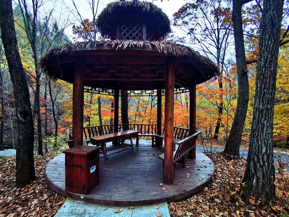 进入大冰沟森林公园,秋色已经很浓了。这是入口处的休闲凉亭。