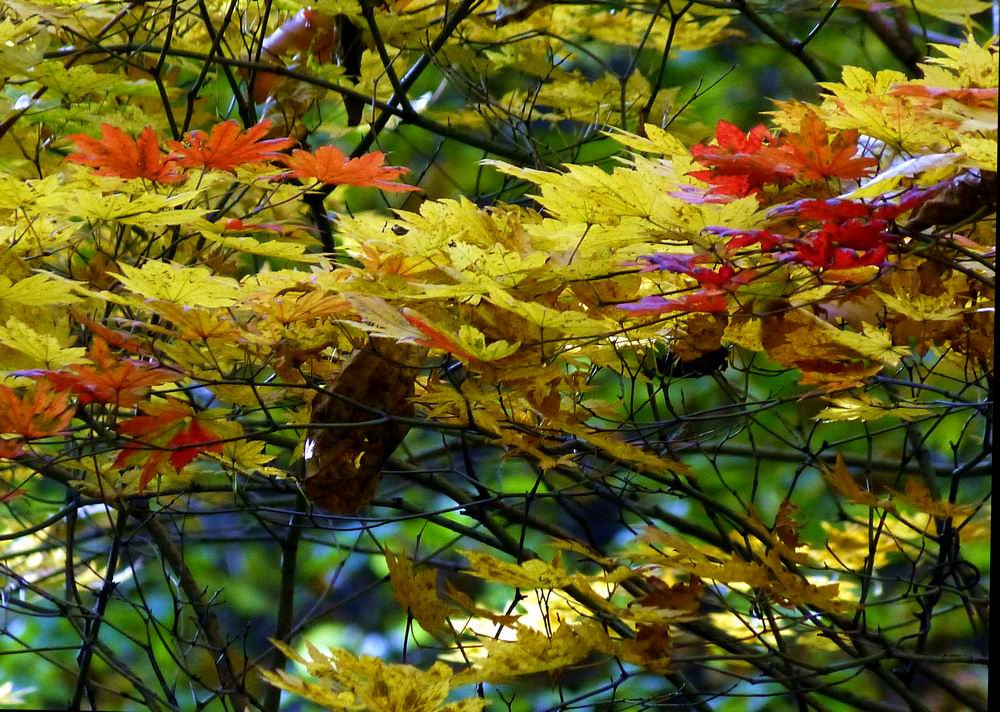 “垛道枫叶画廊”里的山岚,被枫树、柞树、紫椴、黄菠萝等植物,染的五颜六色。