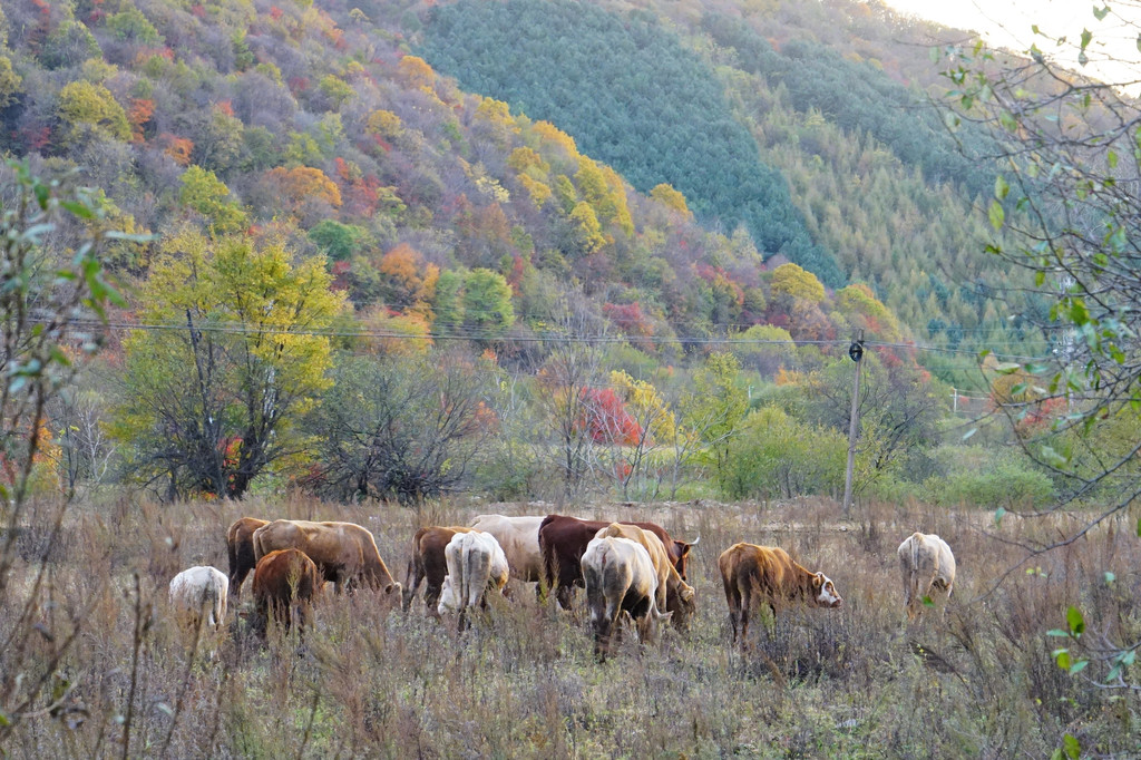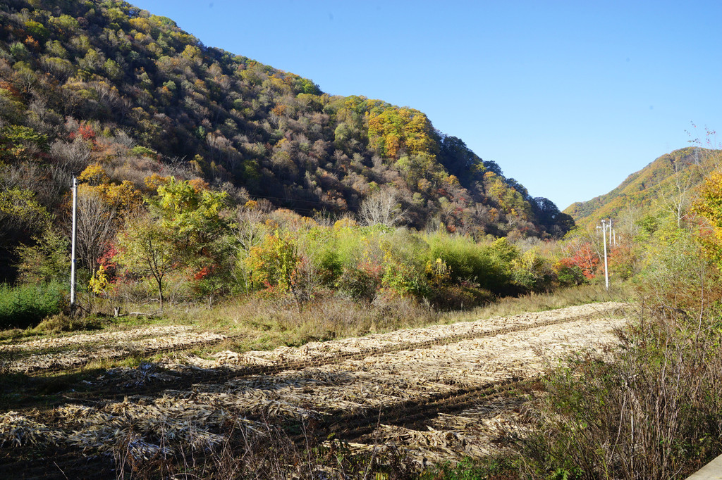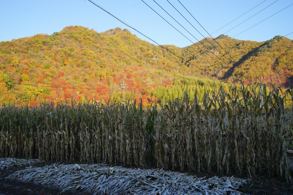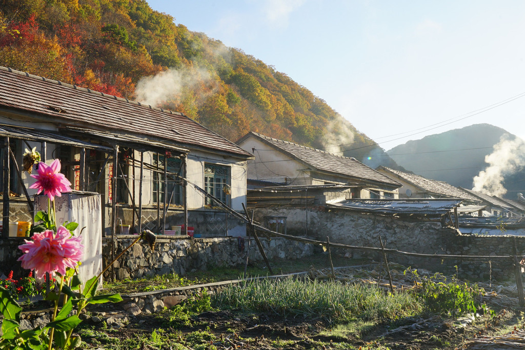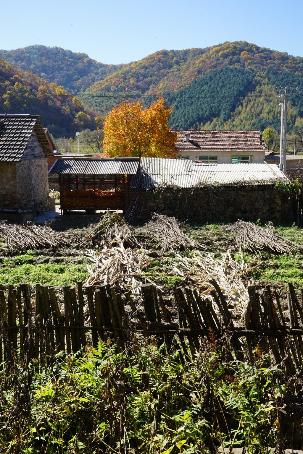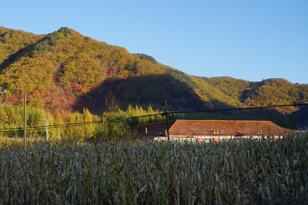 这里吸引我的不仅有五花山和枫叶红,还有东北山里的乡村风景。