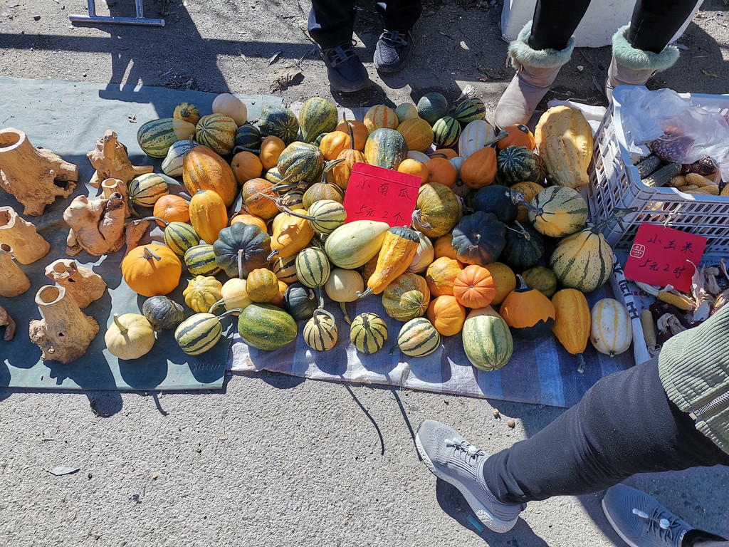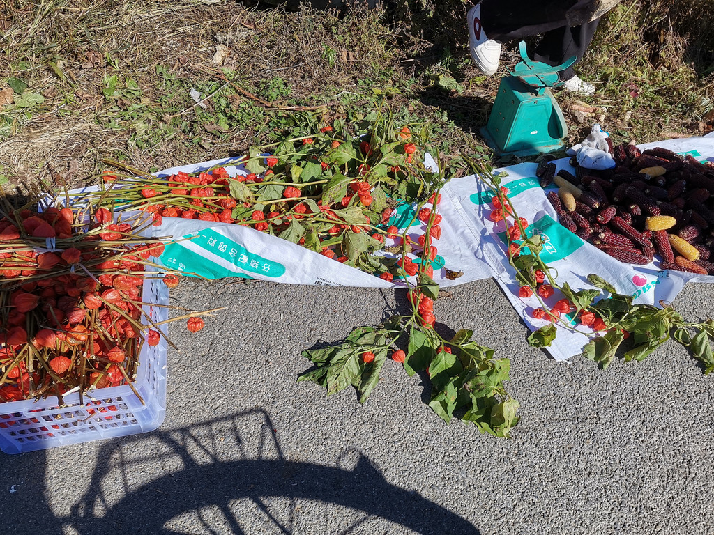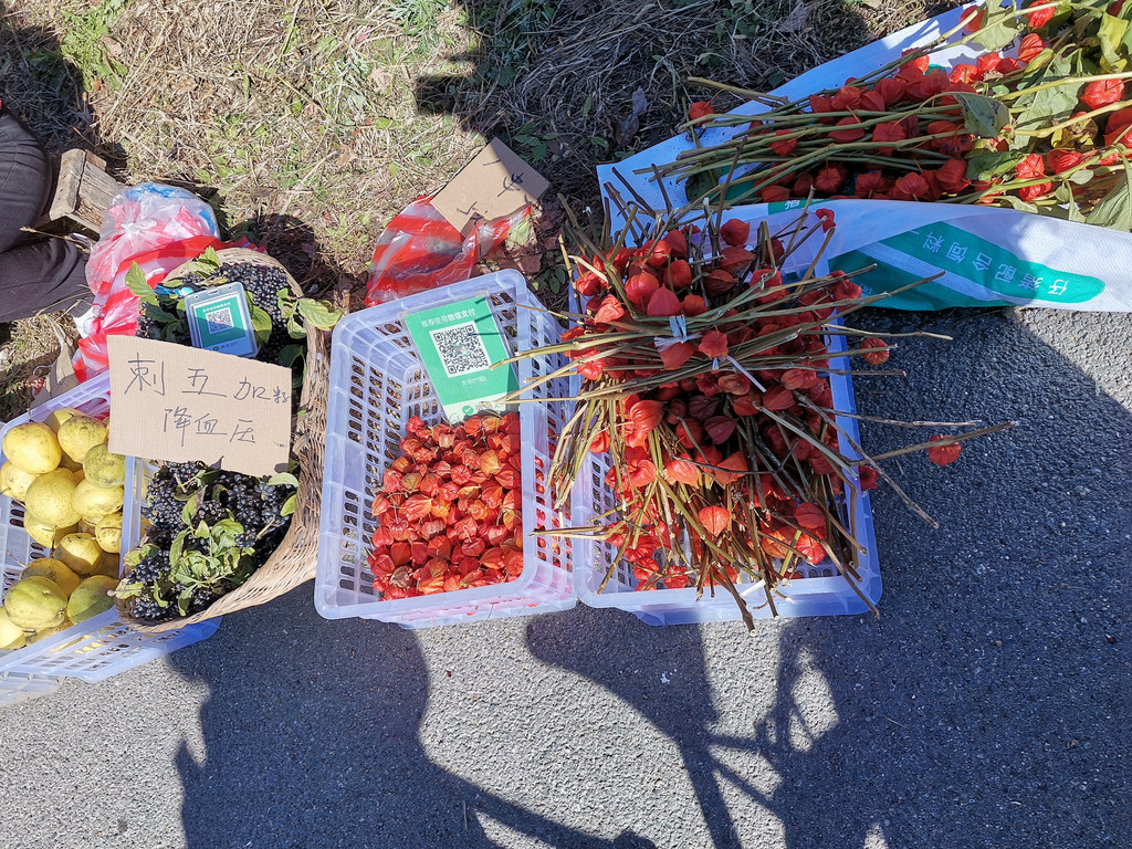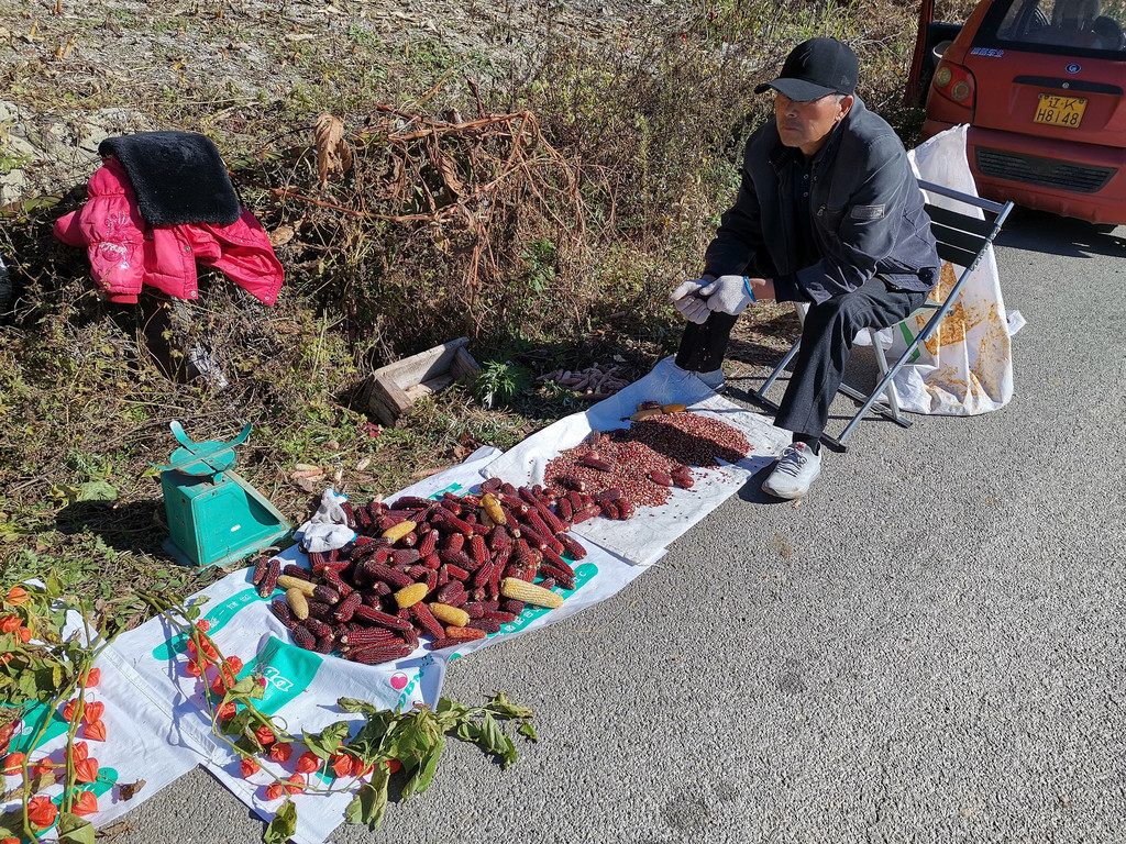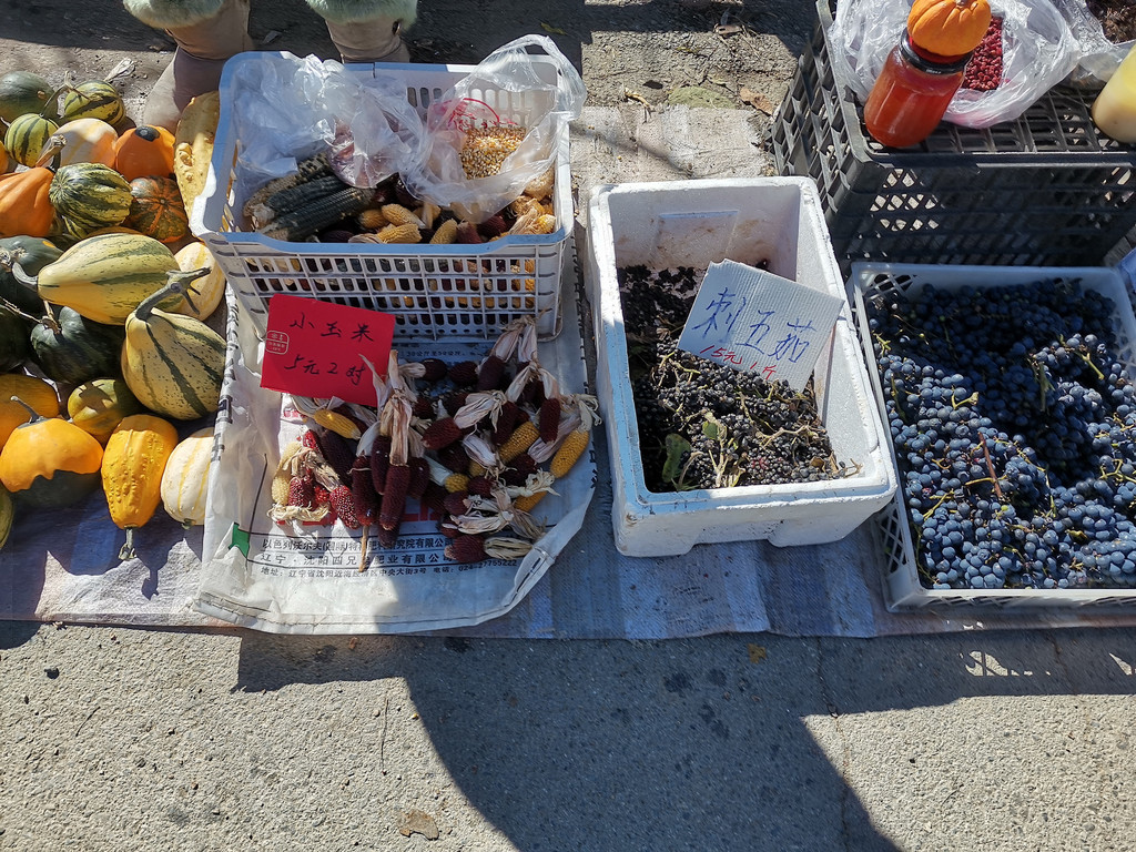 正是采秋时节,山里人一摊摊的山货,全是山上野生和自家园子里种的。其中一种小苹果,当地人叫鸡心果,酸甜宜口,至今让我怀念。