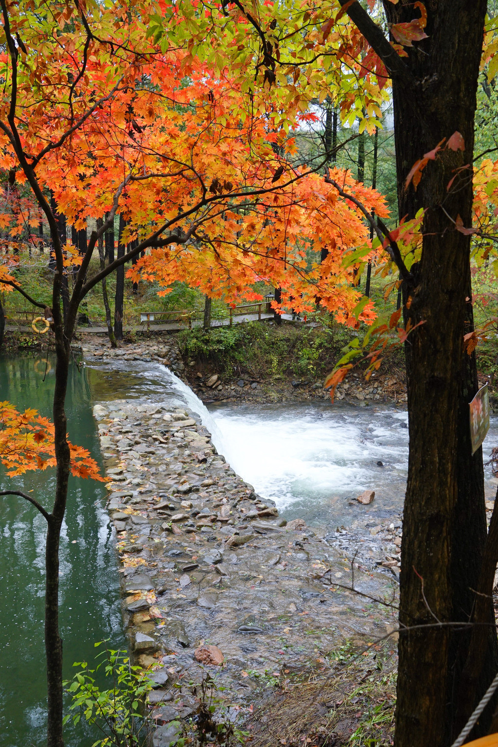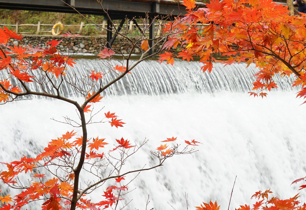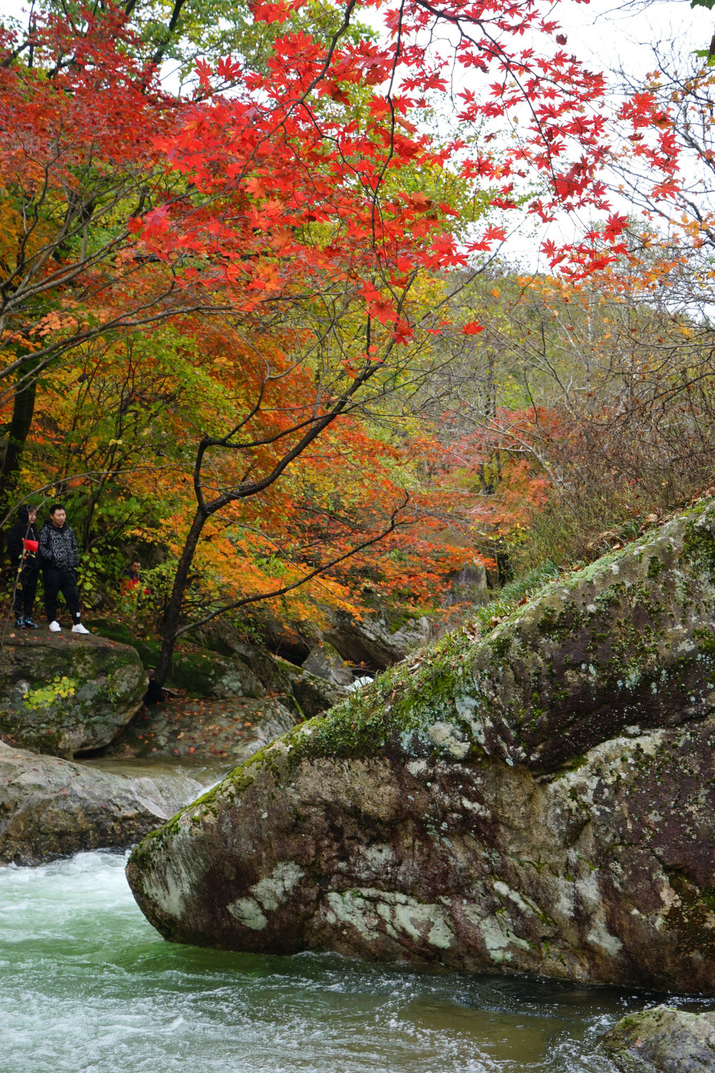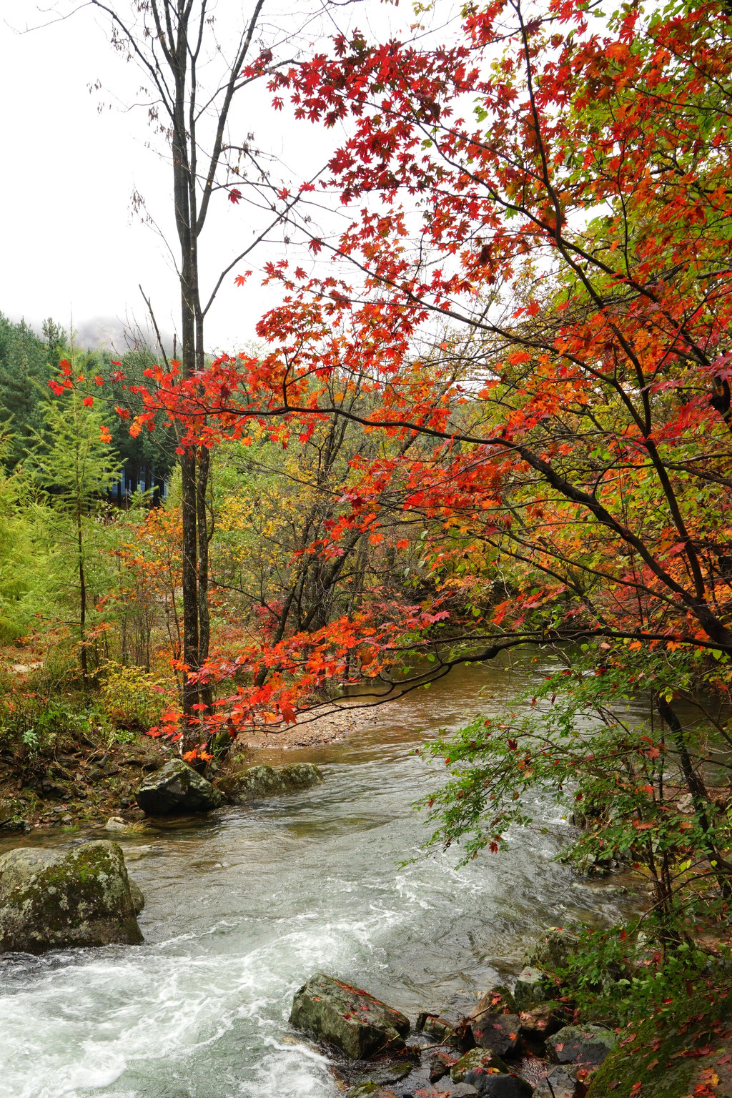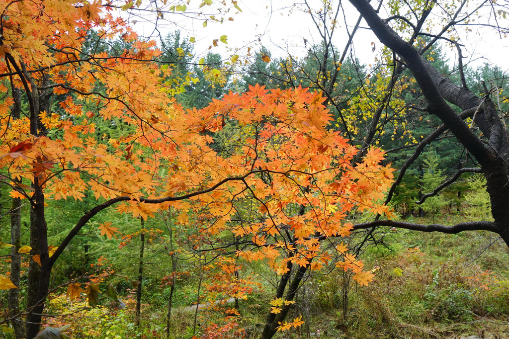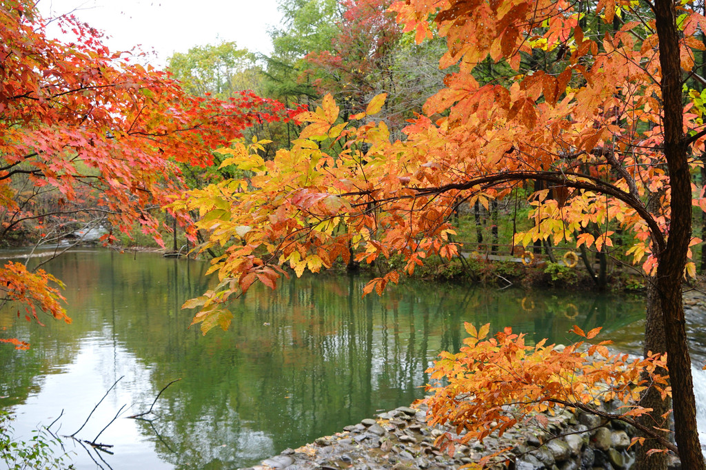 虽然仍是阴云密布,但峡谷里的红枫已经染红了青山,不影响我的欣赏心情。