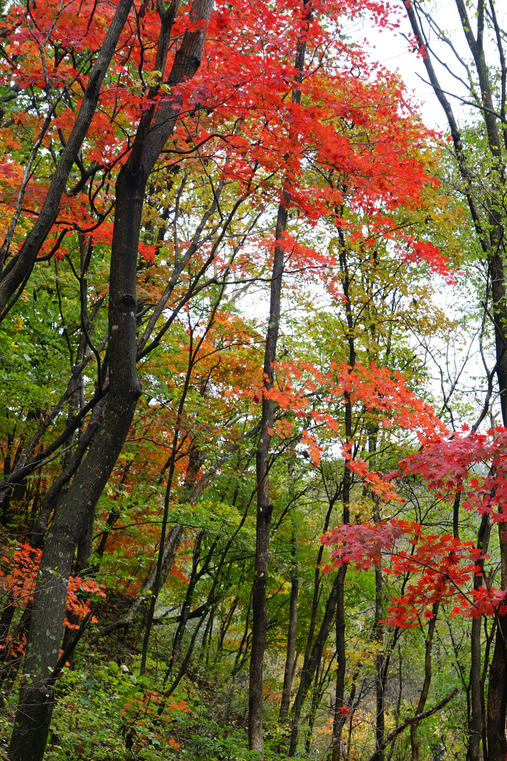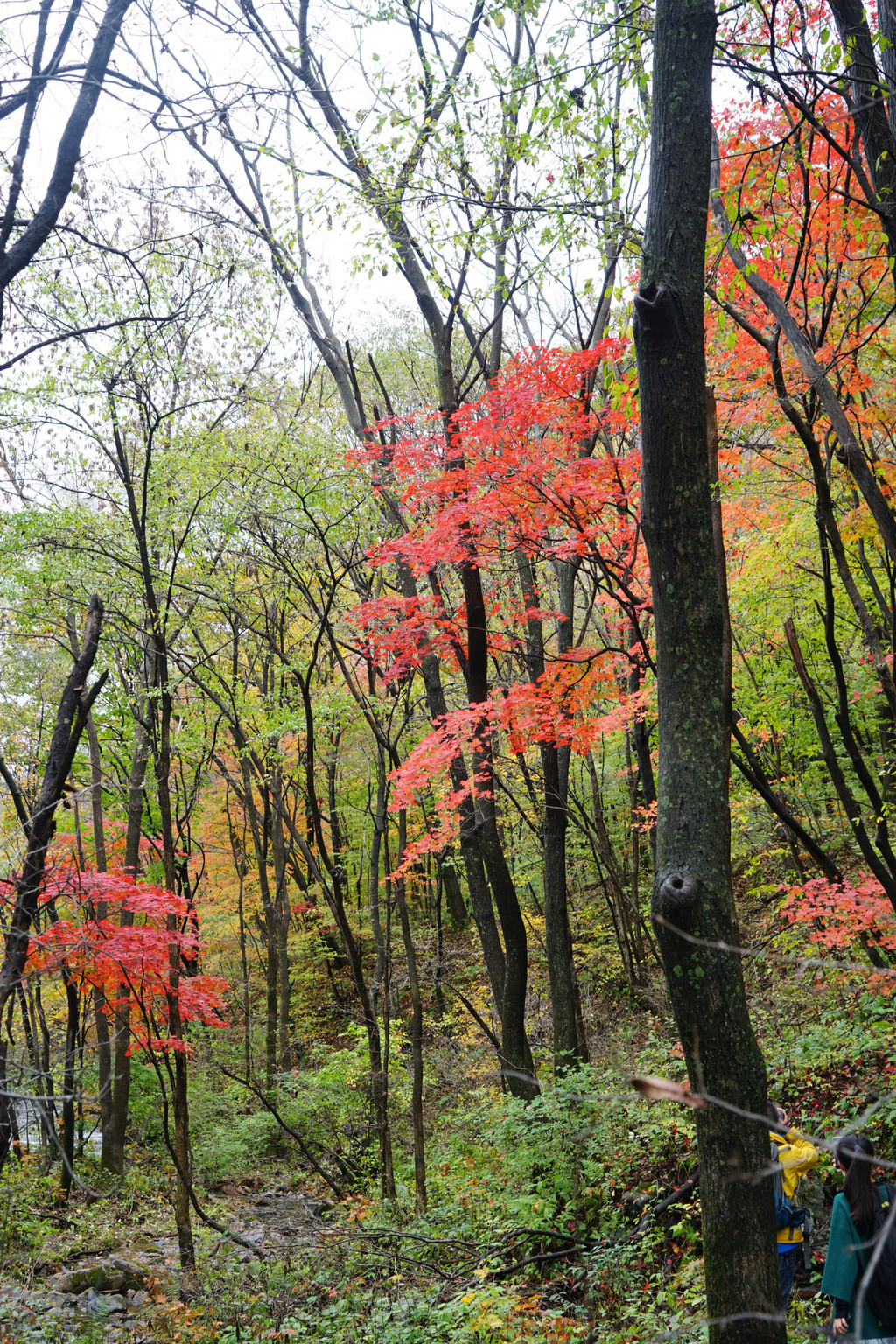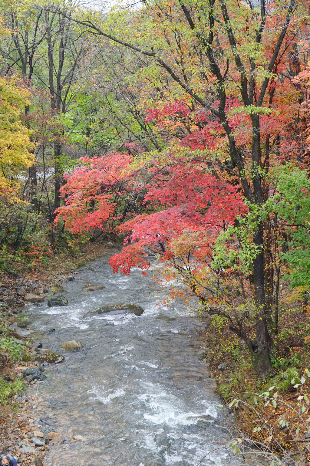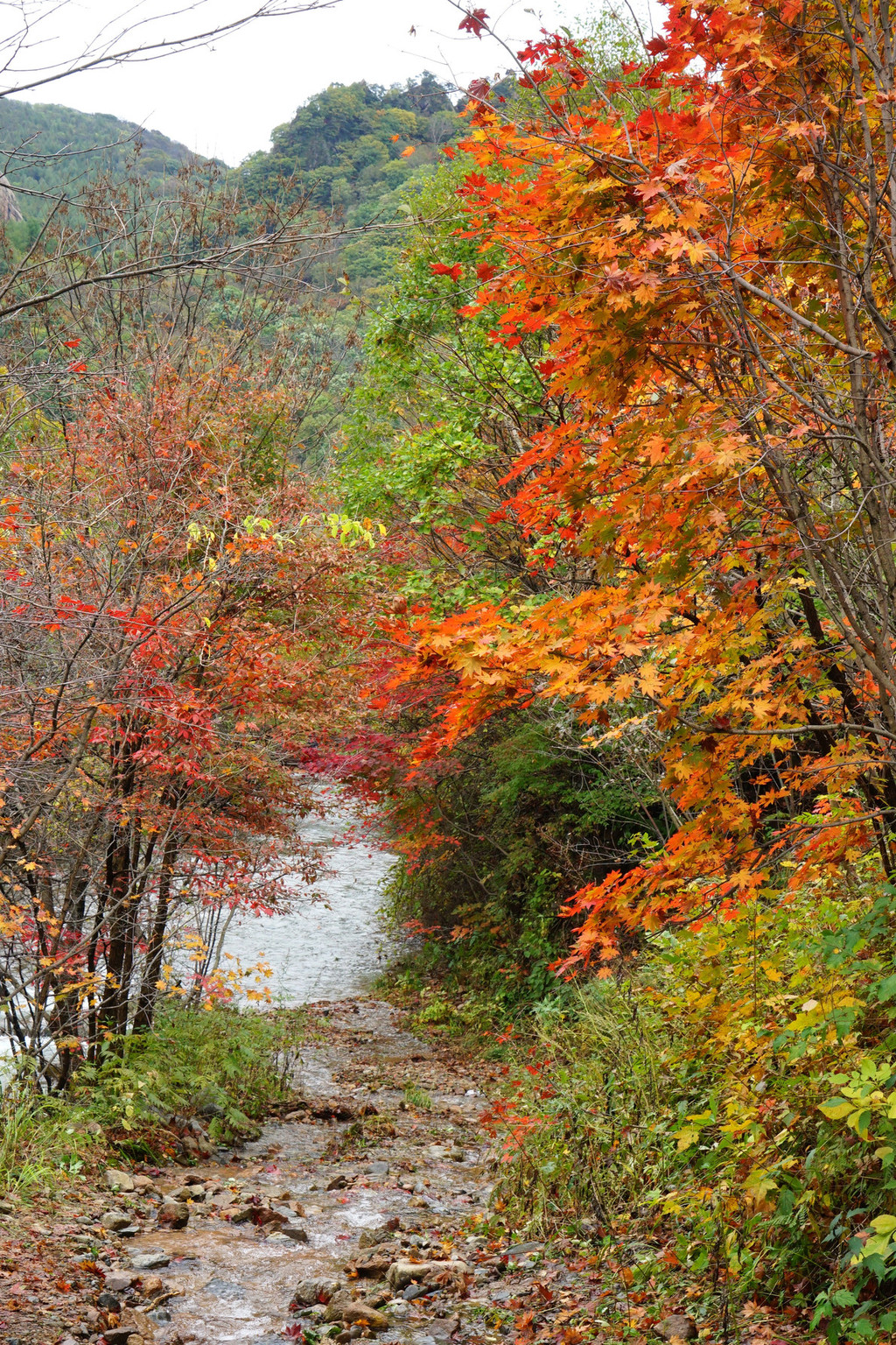 虽然仍是阴云密布,但峡谷里的红枫已经染红了青山,不影响我的欣赏心情。