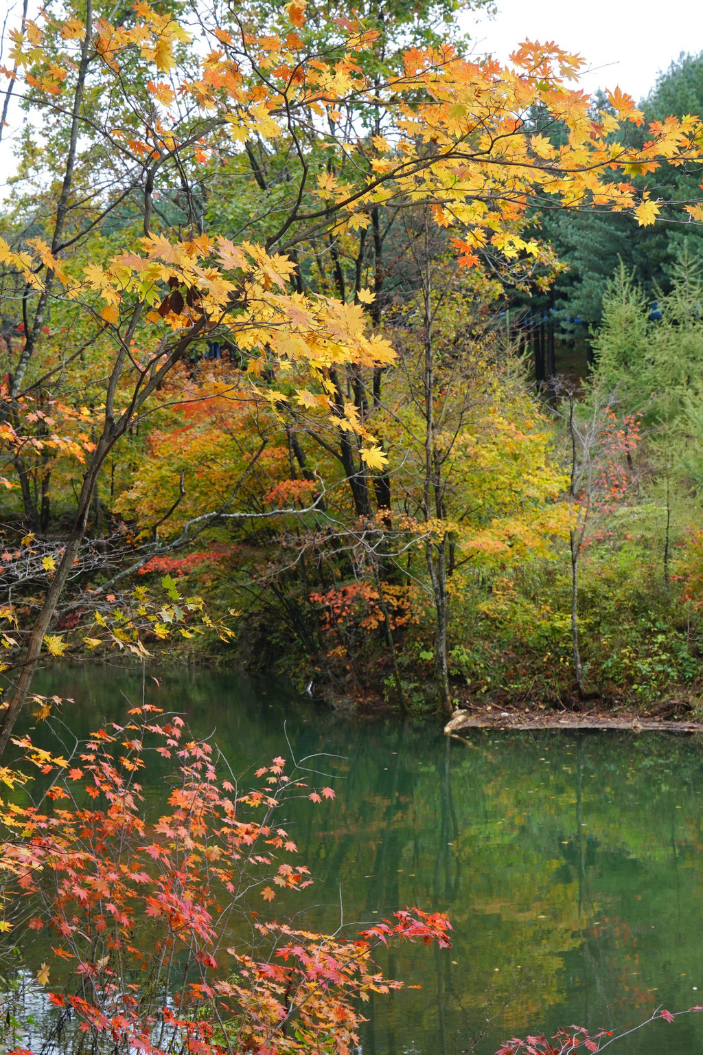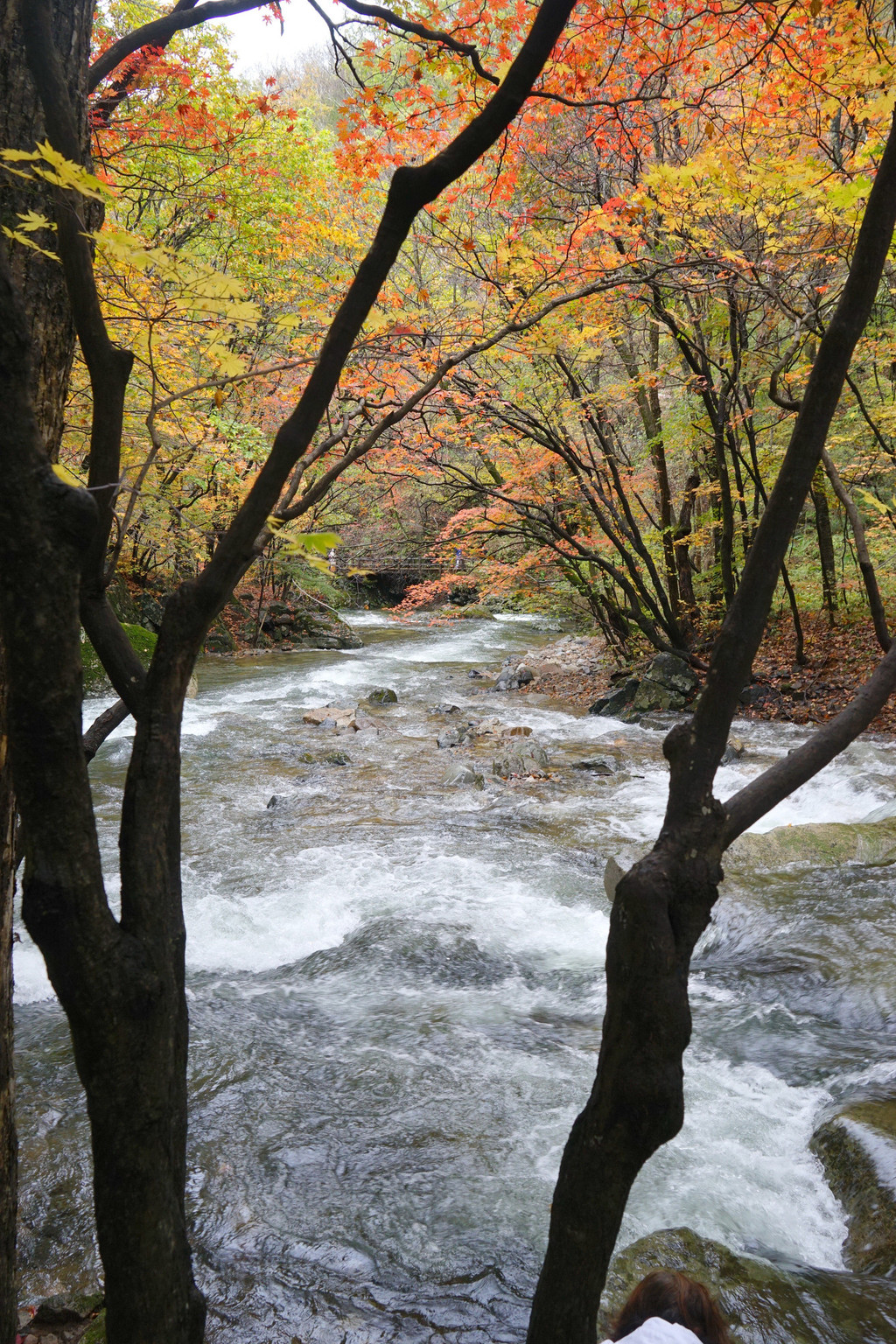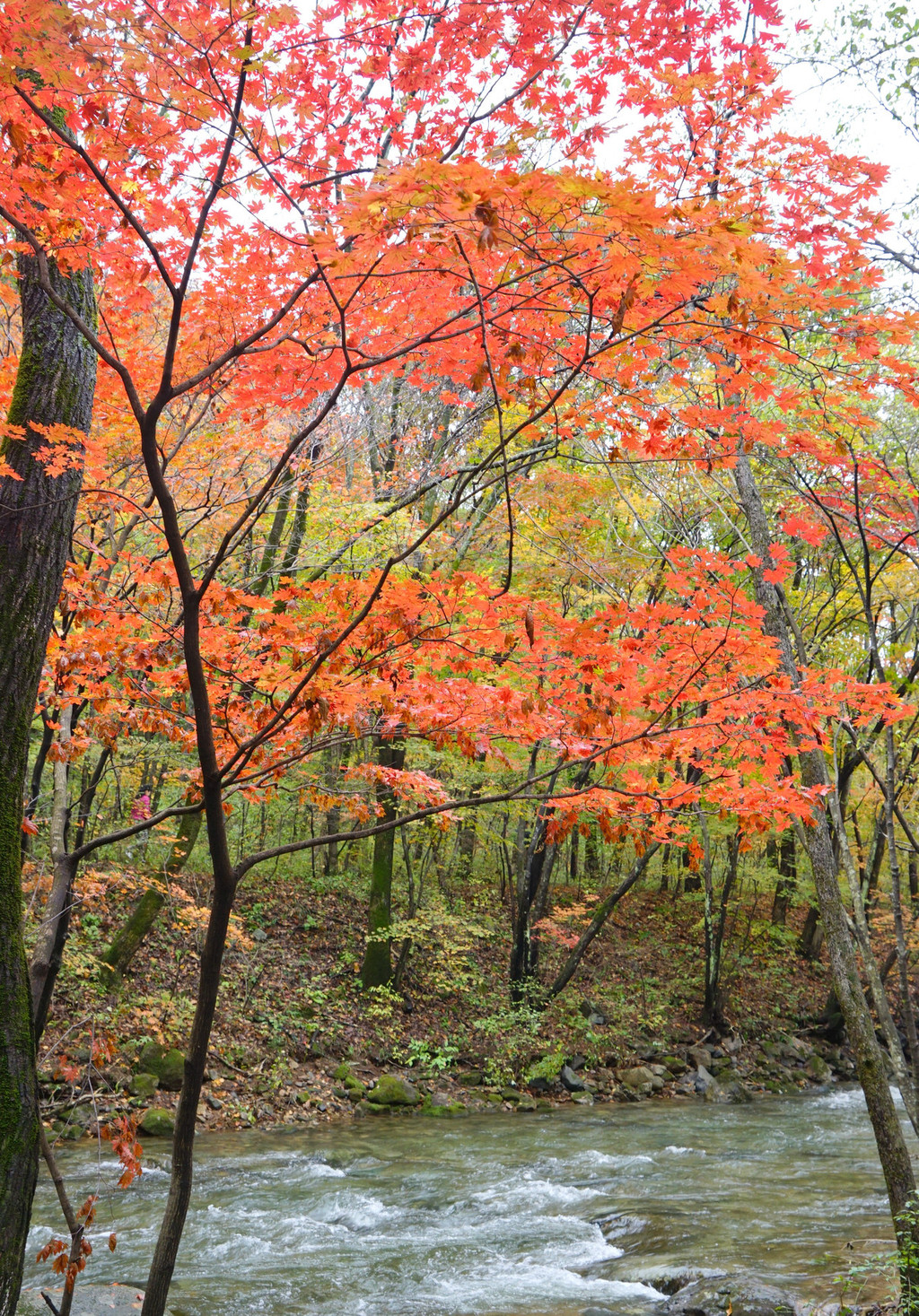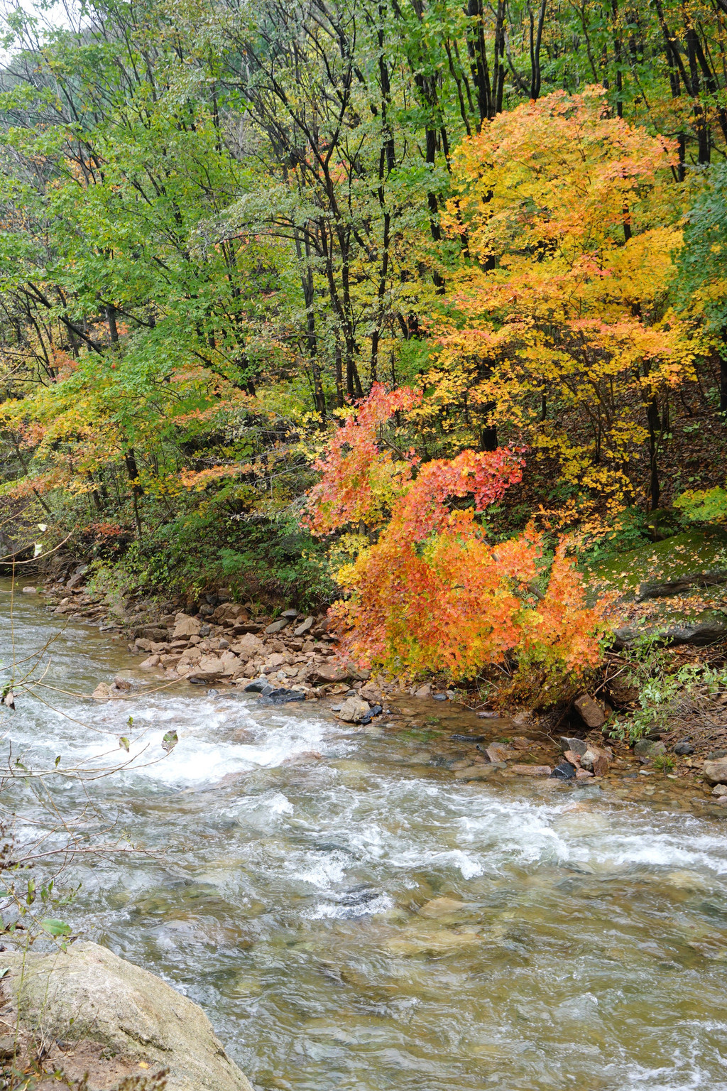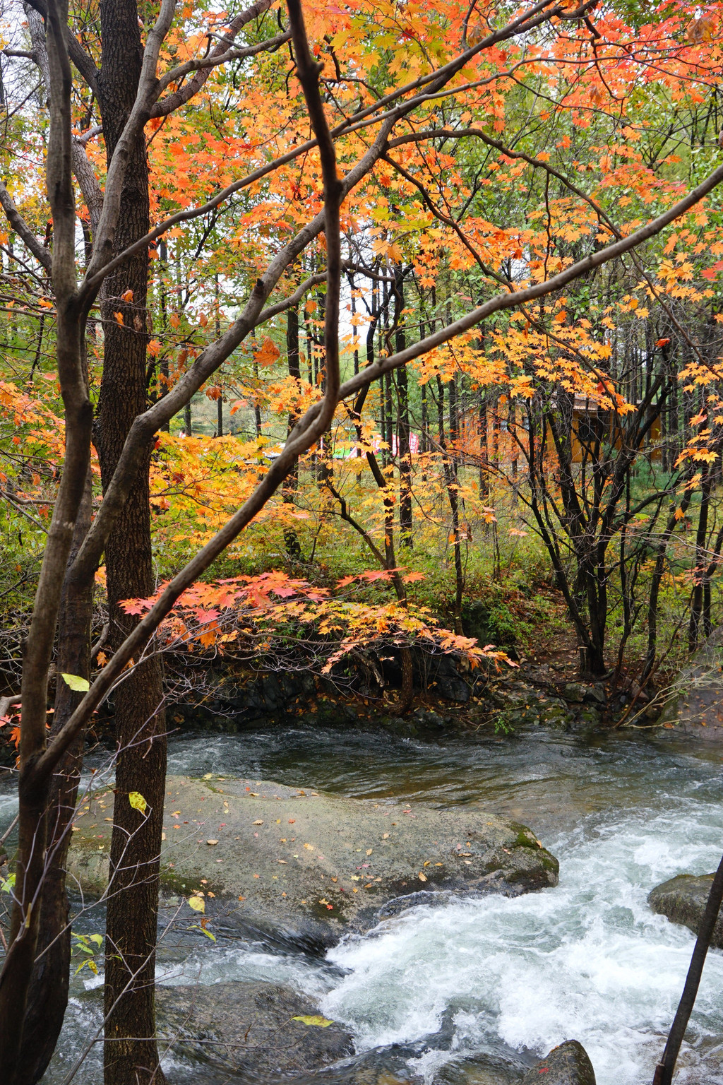 虽然仍是阴云密布,但峡谷里的红枫已经染红了青山,不影响我的欣赏心情。