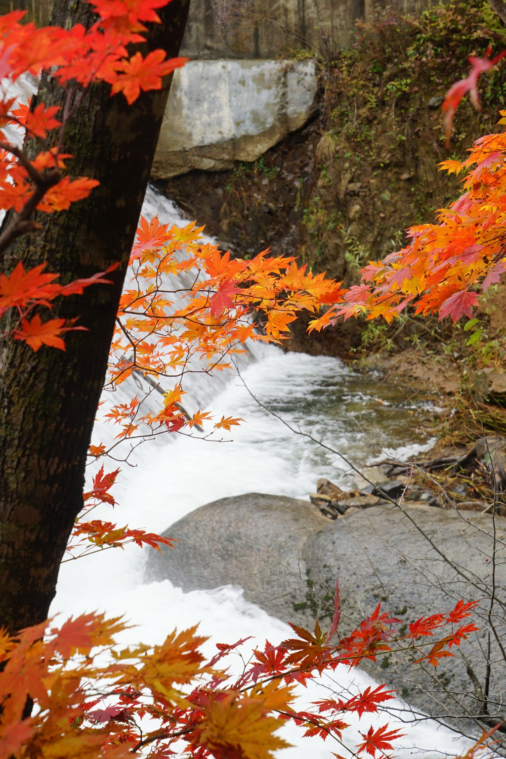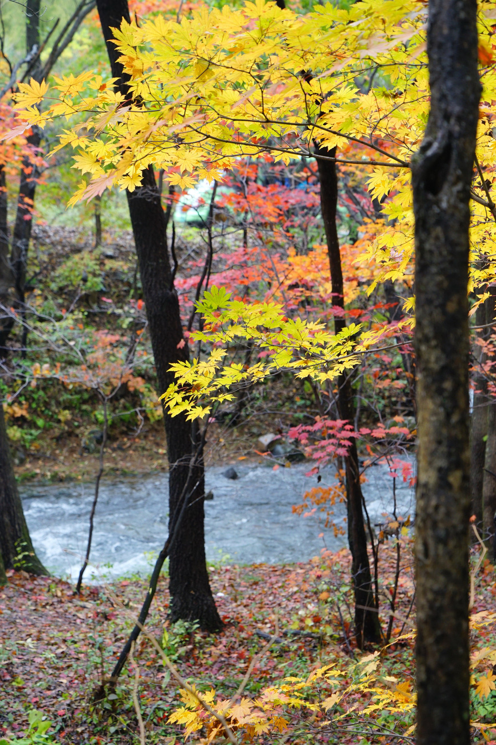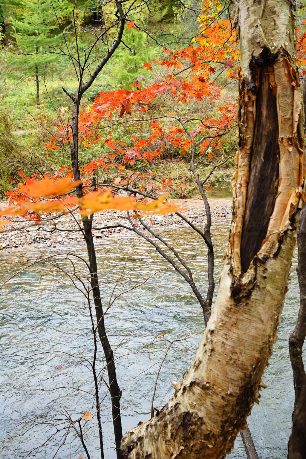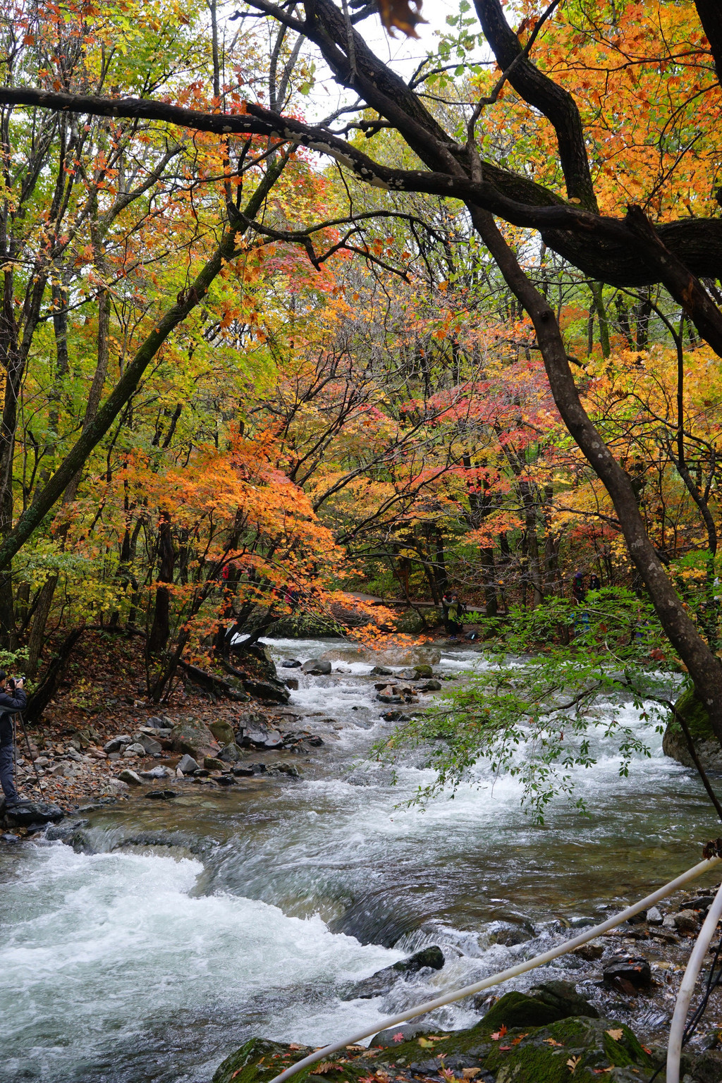 虽然仍是阴云密布,但峡谷里的红枫已经染红了青山,不影响我的欣赏心情。