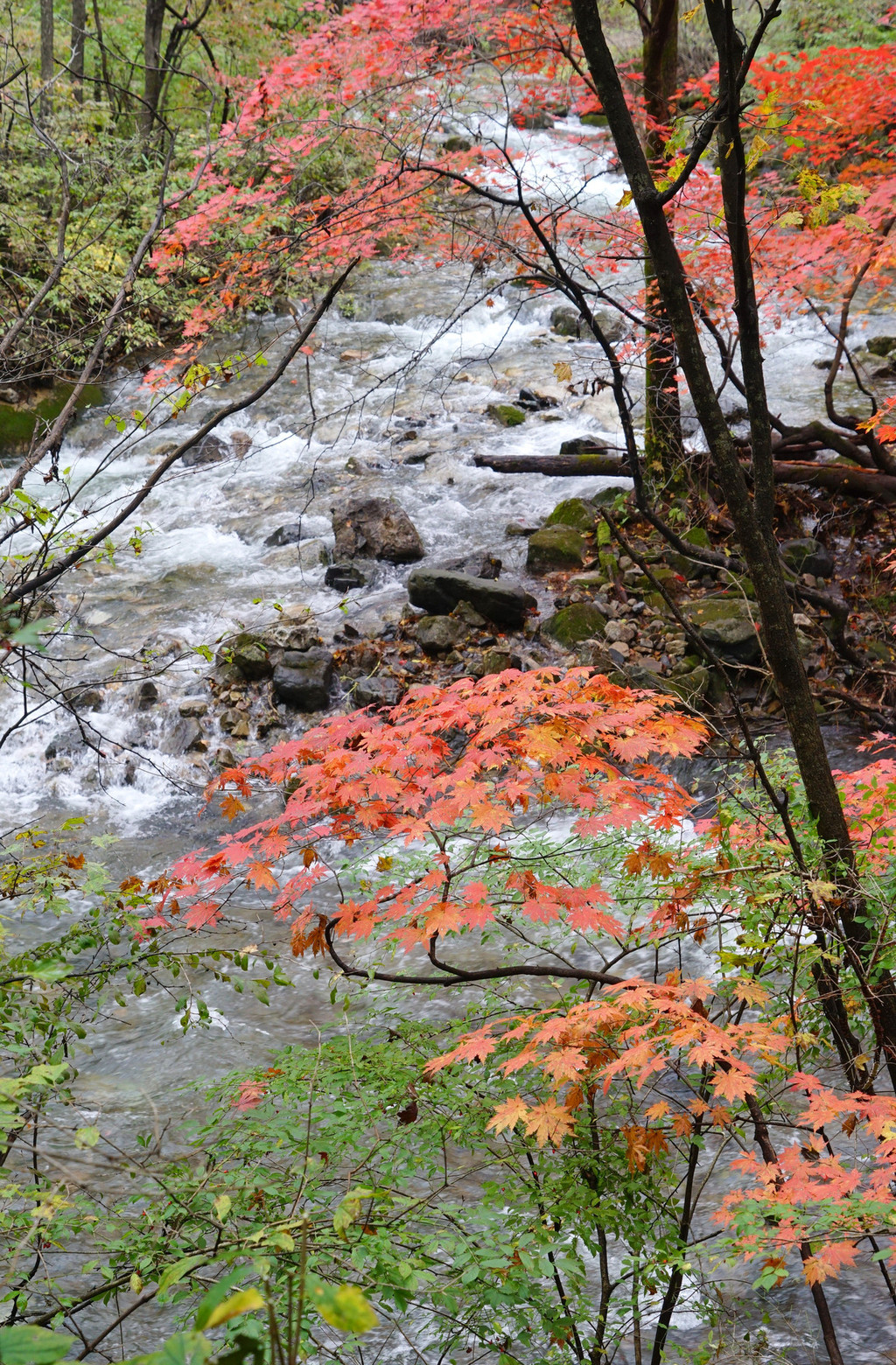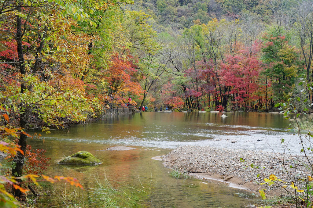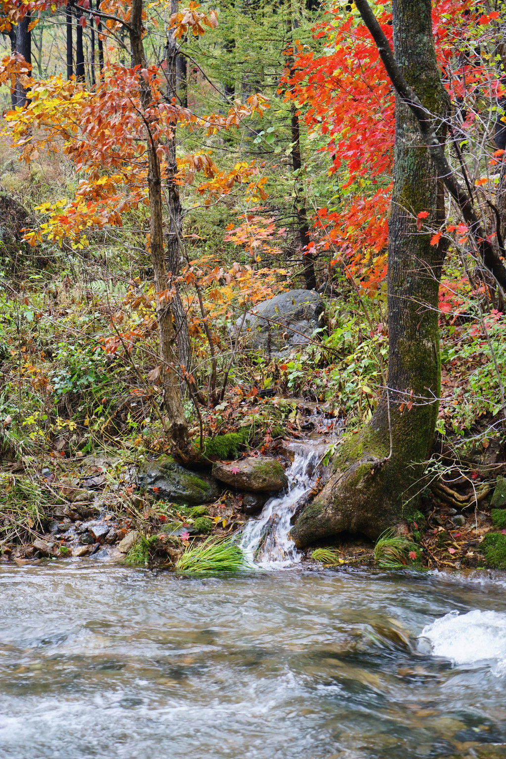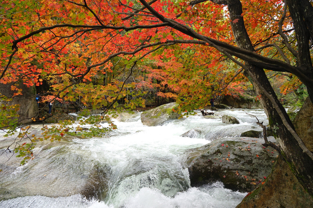 枫树喜欢临水而居,只要沟里有水,便还你一片红一片黄。