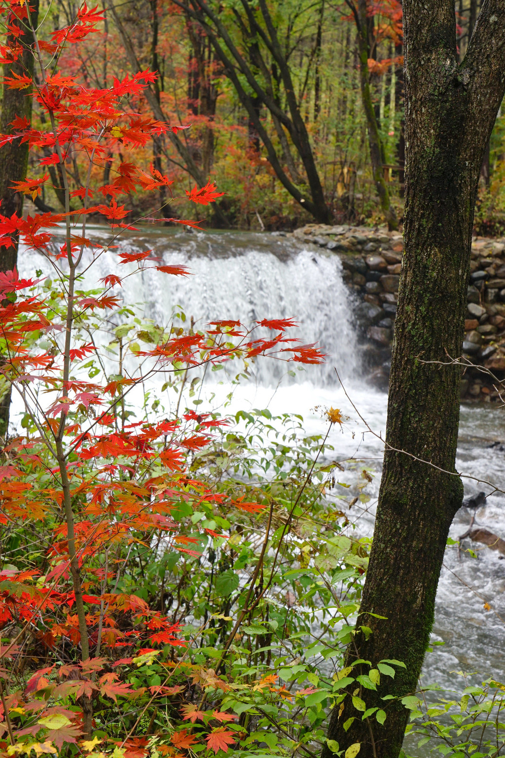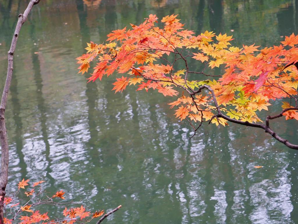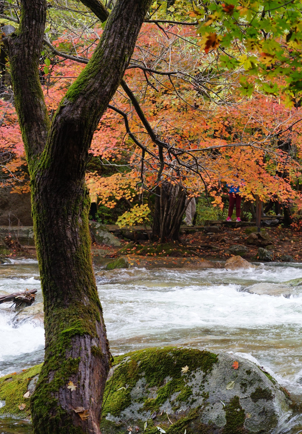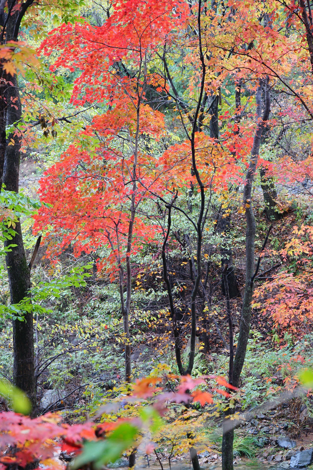 枫树喜欢临水而居,只要沟里有水,便还你一片红一片黄。